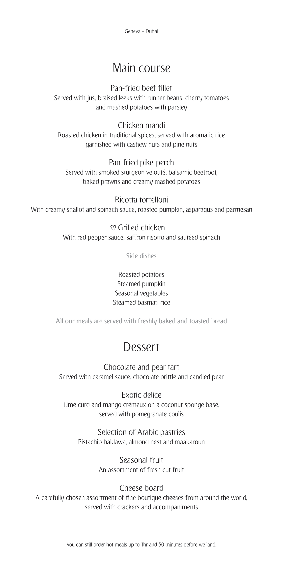 I had taken the middle seat, 2F, on the previous Dubai–Geneva flight, while Jessy took 2K. We had originally planned to swap seats for the return journey, but were both feeling pretty happy with the our respective little homes, so we ended up taking the exact same seats on this flight as well.