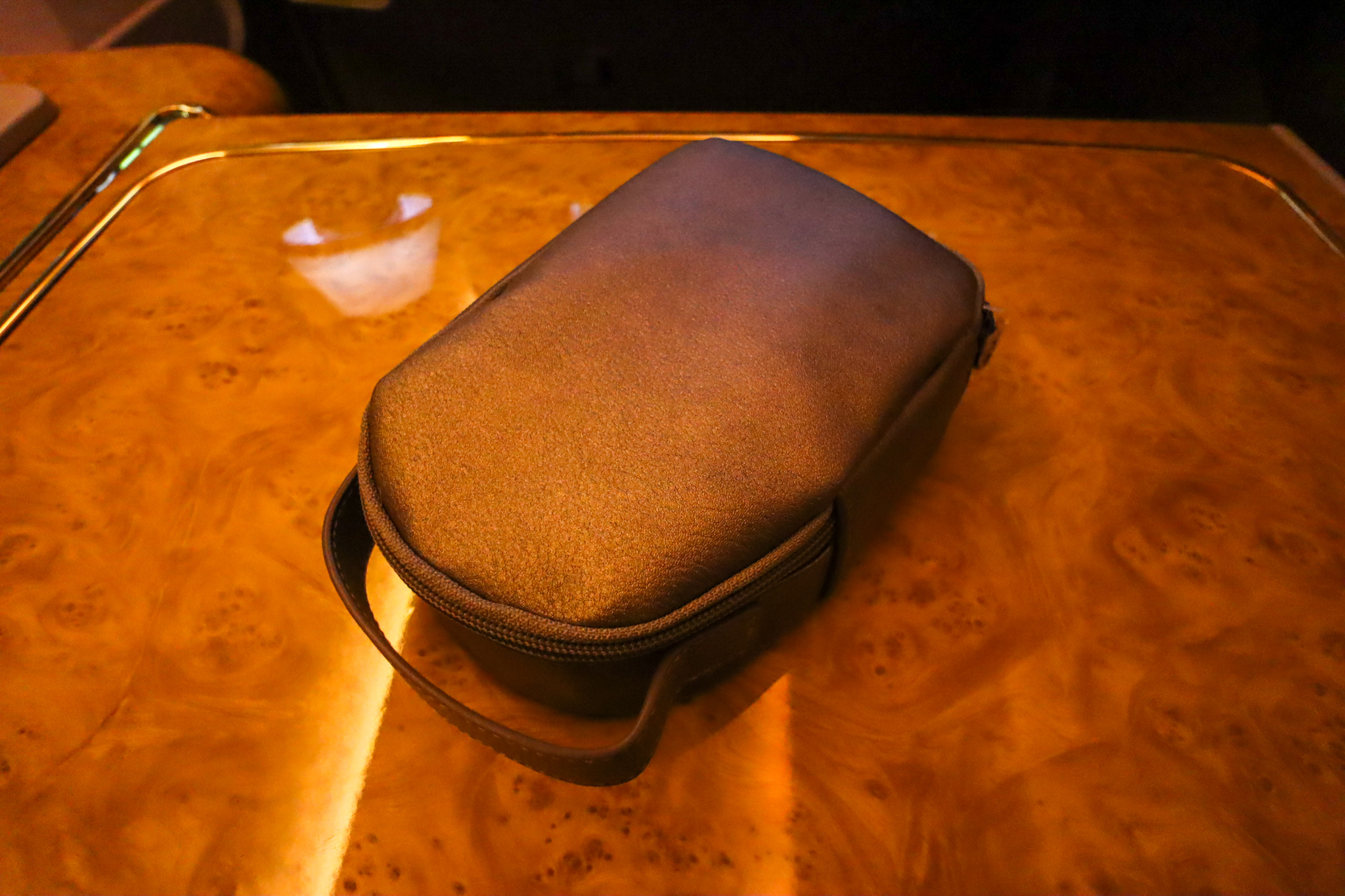 As I settled in, I took stock of thee now-familiar seat surroundings ahead of me: the ICE entertainment system, the foldable vanity mirror revealing a Byredo skincare set, and the pull-out writing kit. Compared to the pre-pandemic era, the writing pad and pen both came wrapped in plastic film as an added layer of protection.