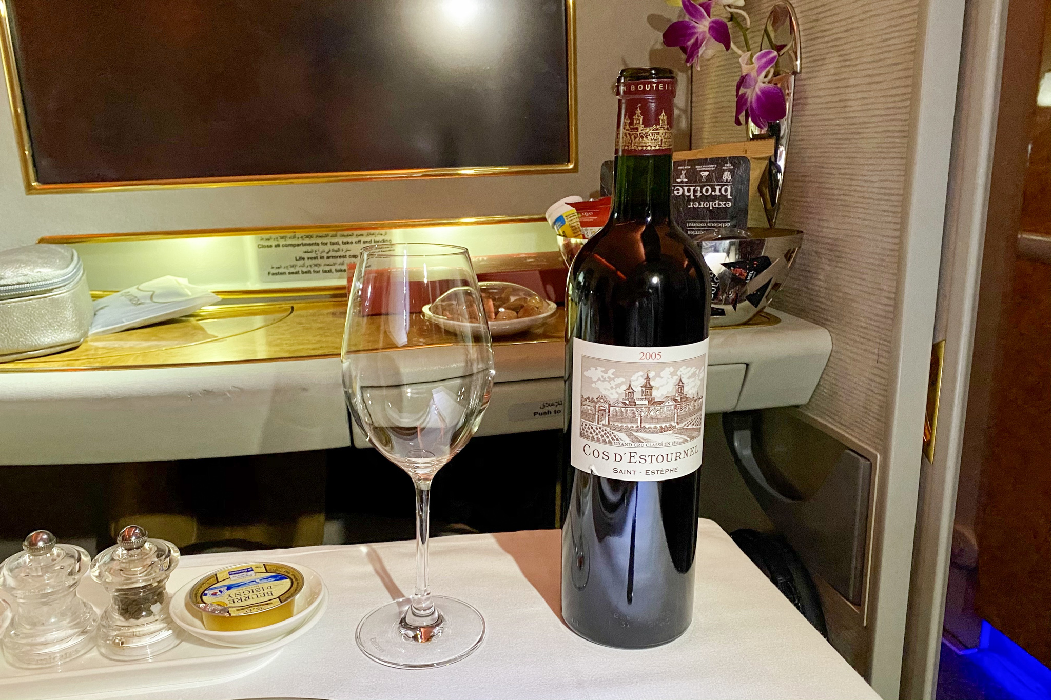 Combined with a full-bodied glass of St-Estèphe from Emirates’s very own winery in Bordeaux, and this was one of the best meals I’ve had on Emirates First Class thus far (keeping in mind that the catering is one of the product’s well-documented weak points compared to all the rest).