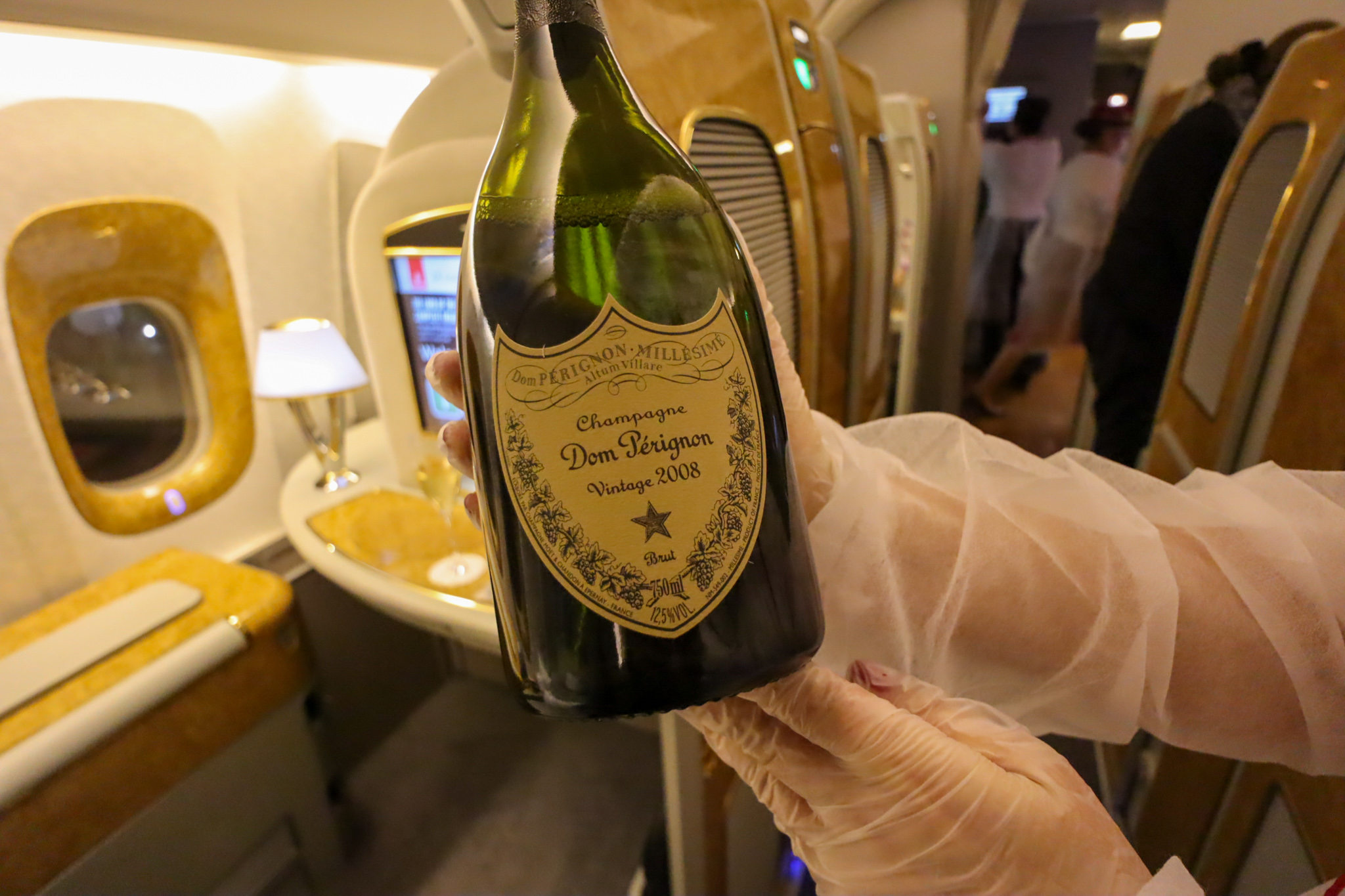 Even though the older hard product on this seven-hour hop down to Dubai wouldn’t compare to the Game Changer suites I had experienced earlier, Emirates’s award-winning First Class soft product would thankfully remain consistent, beginning with a glass of Dom Perignon Vintage 2008 and some mixed nuts.