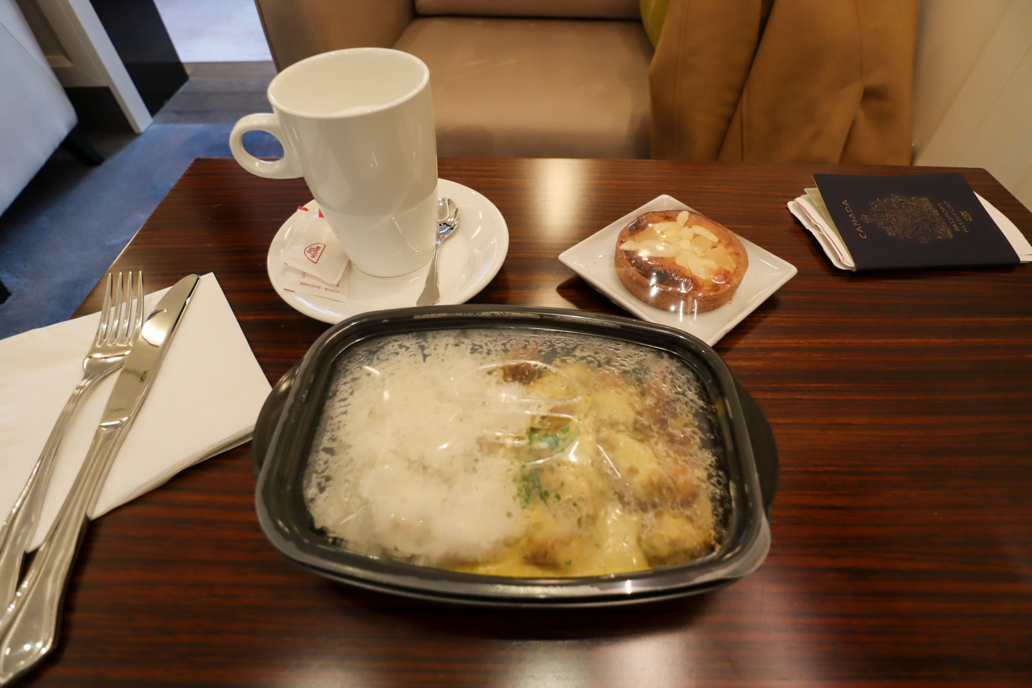 When I woke up, I ordered some coffee to sip on, got some work done on my laptop, unboxed a surprise package that had arrived in the lounge for me, and then headed to the gate to board the plane.