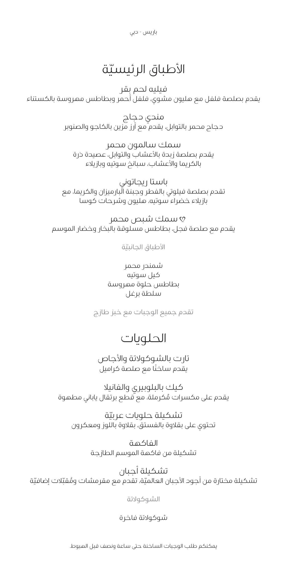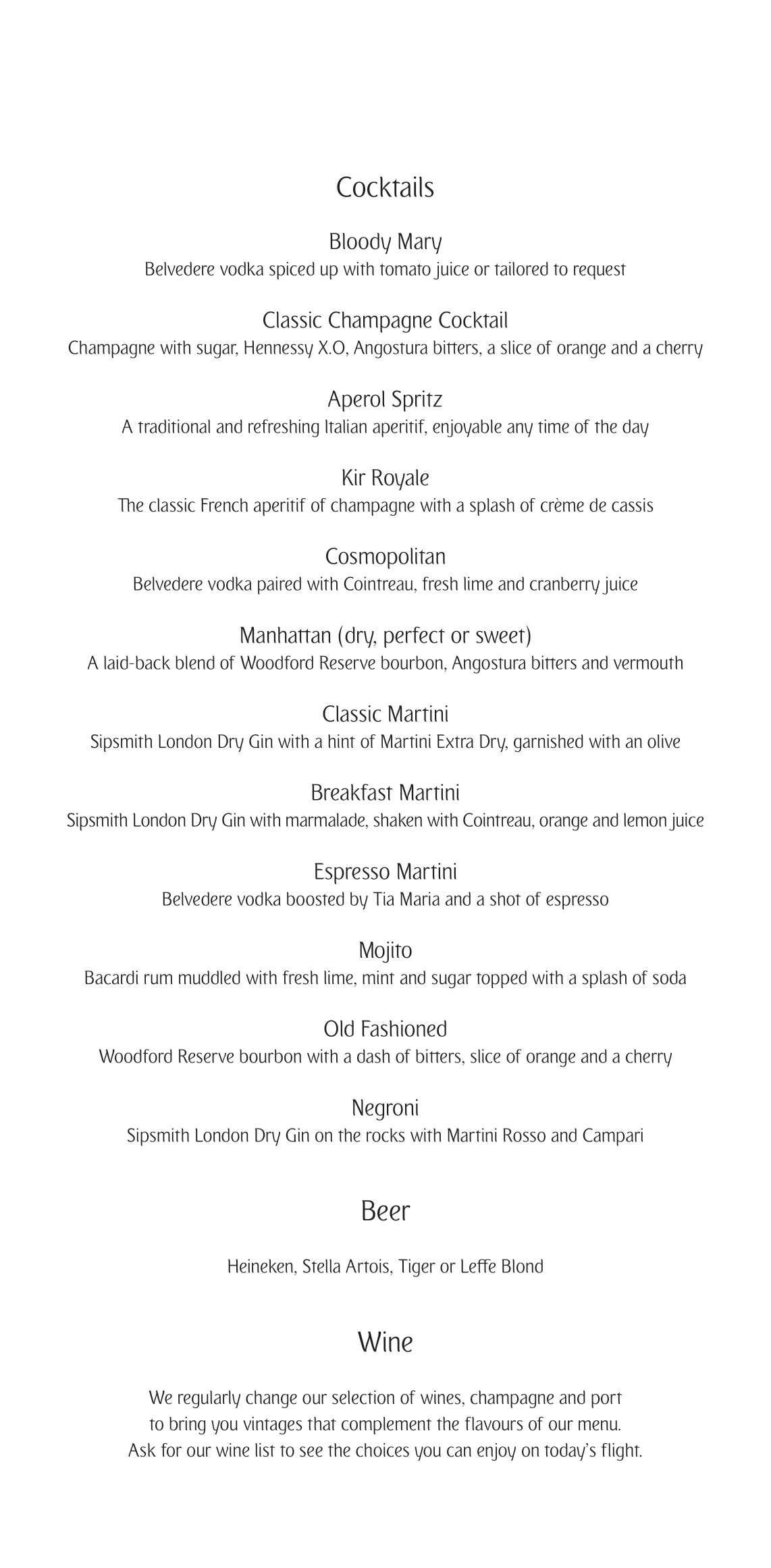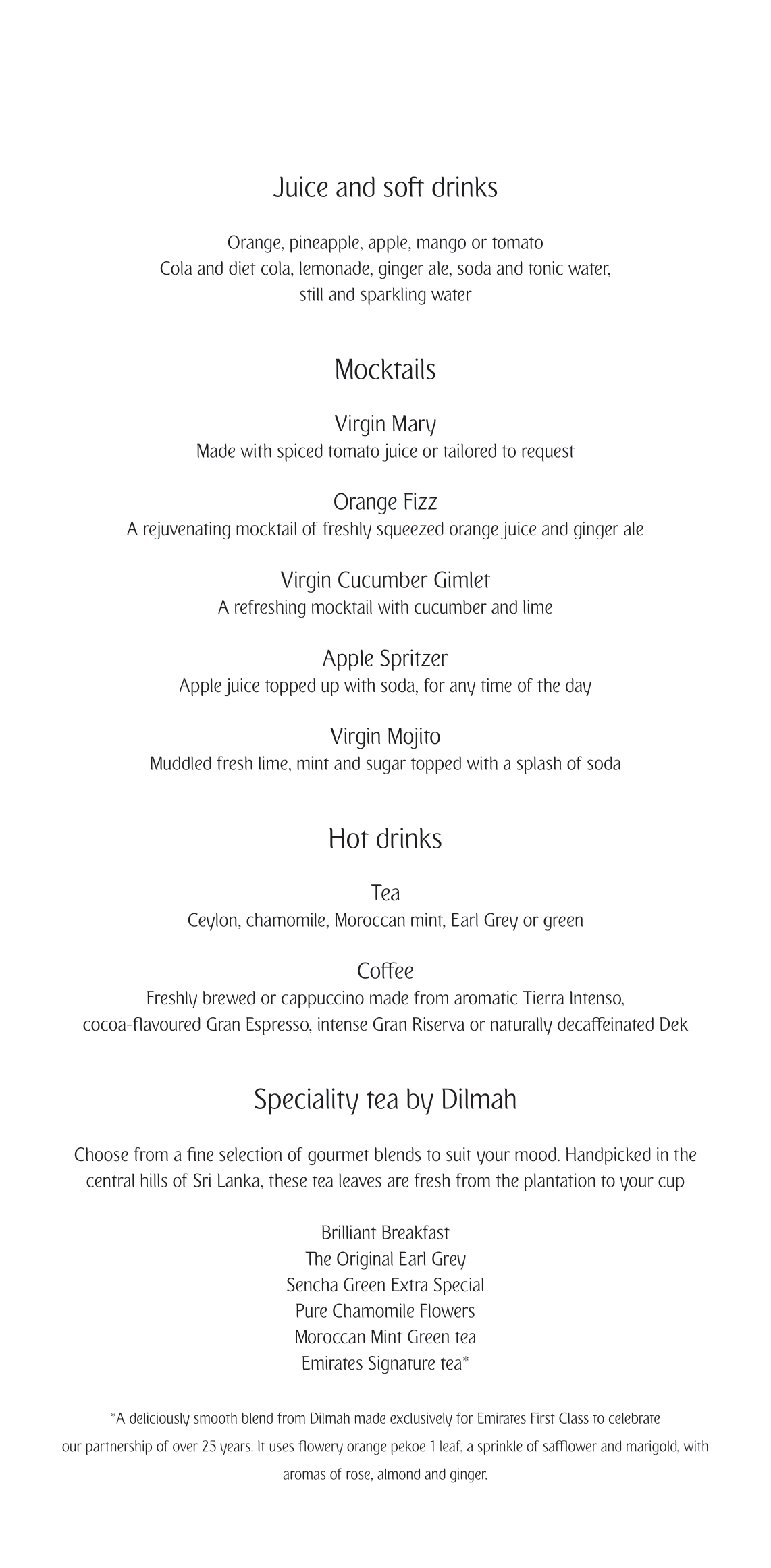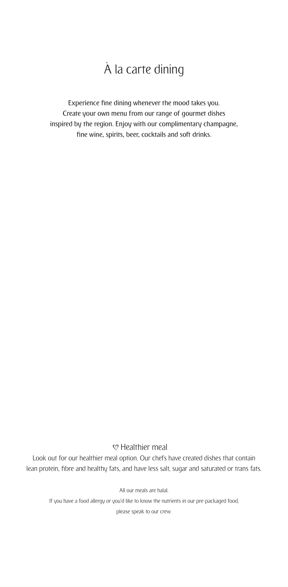 Shortly before takeoff, the crew member stopped by my seat to take my meal orders from the menu, which read as follows: