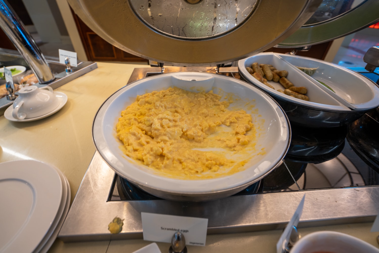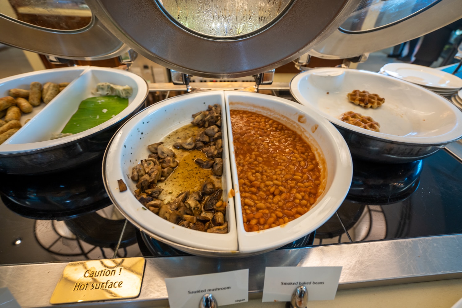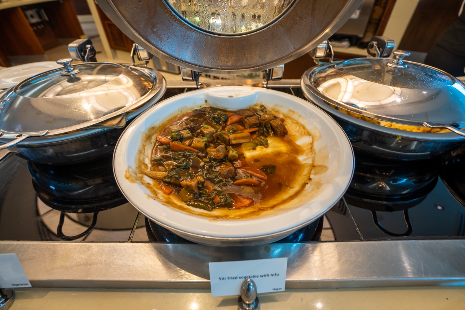 Breakfast was being served during my visit in the morning hours. Hot items included western staples like scrambled eggs and sausage, as well as international flavours, including fried vegetables and chicken congee.