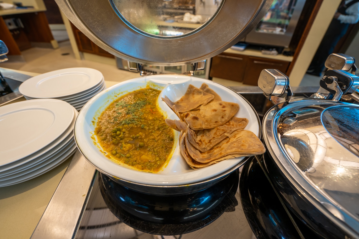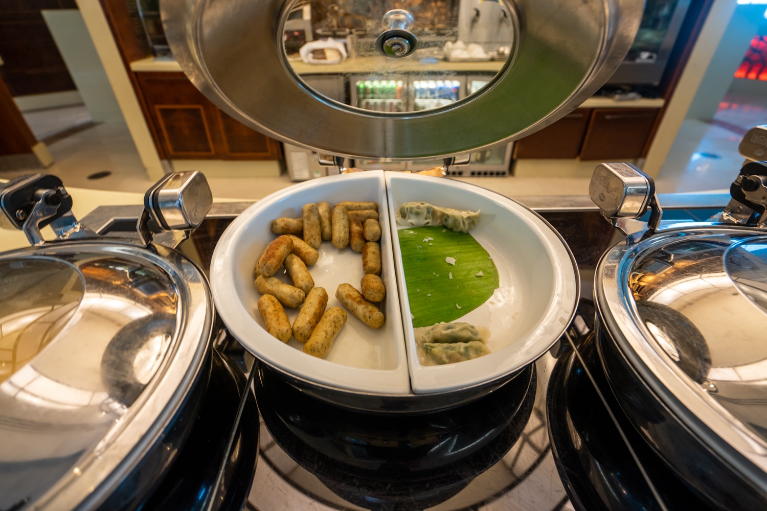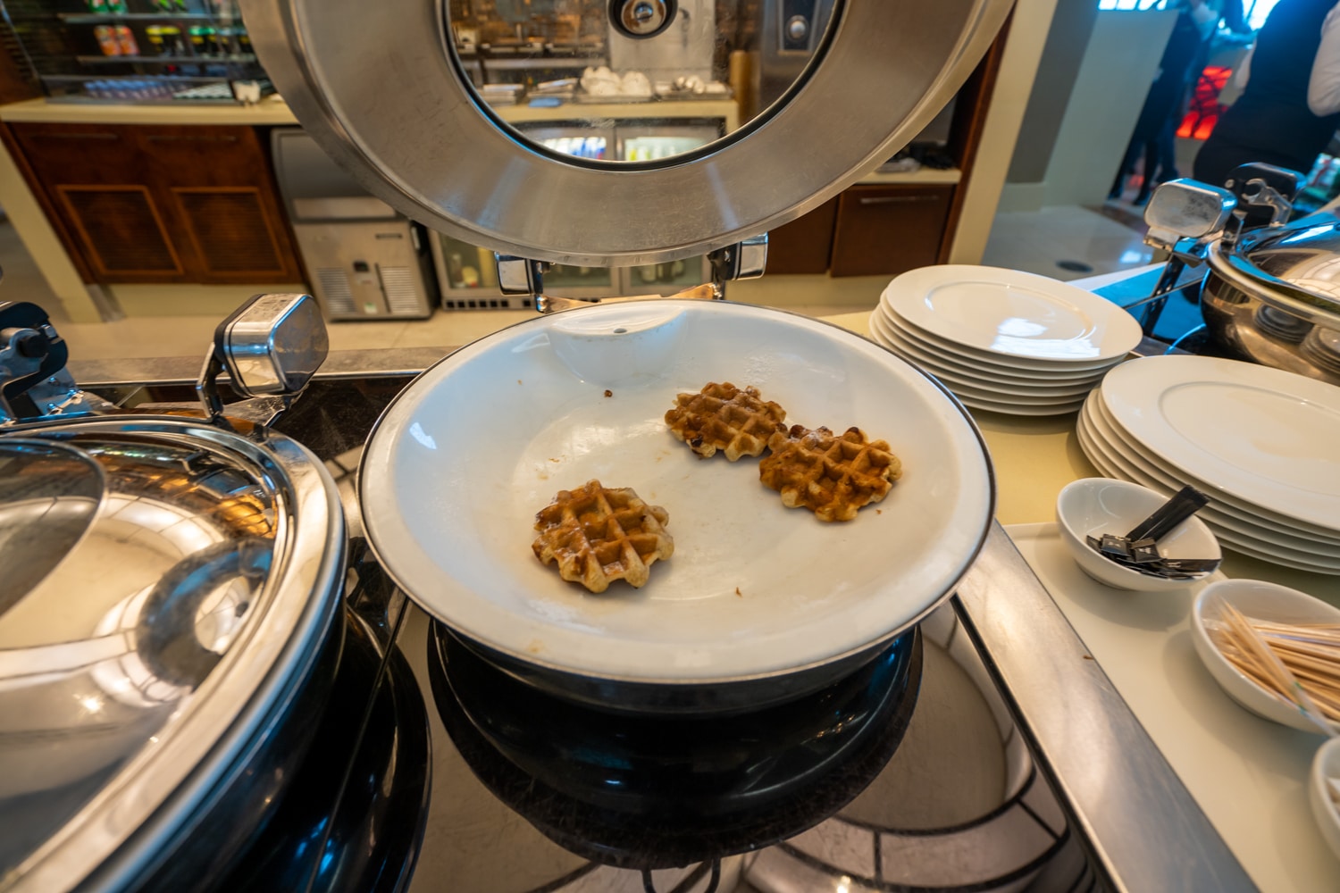 Breakfast was being served during my visit in the morning hours. Hot items included western staples like scrambled eggs and sausage, as well as international flavours, including fried vegetables and chicken congee.