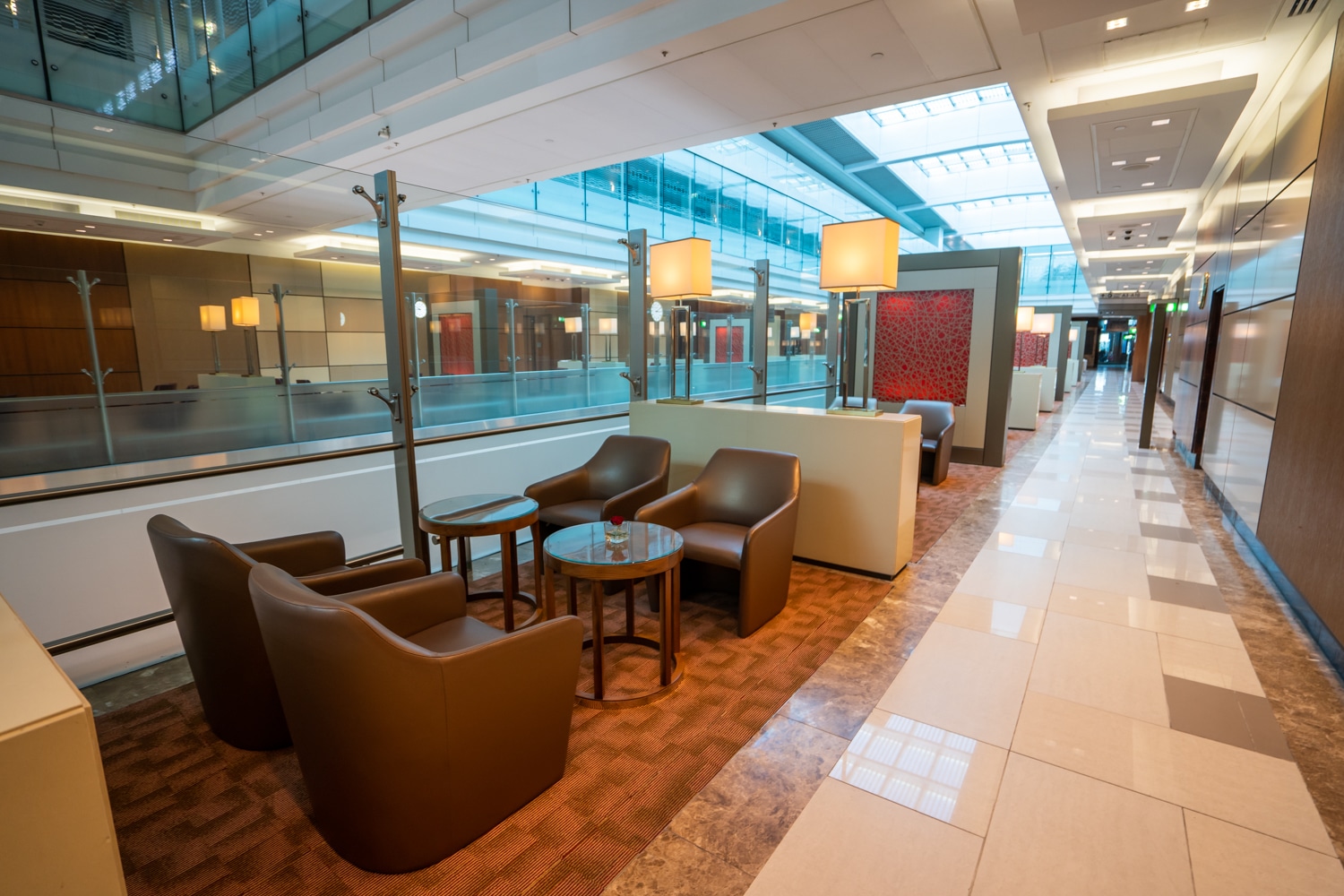 Just like the First Class Lounge, the business class lounge is essentially a carbon copy of the entire airport terminal, simply situated on the uppermost floor. It’s divided into two wings, with gates for boarding scattered throughout each.