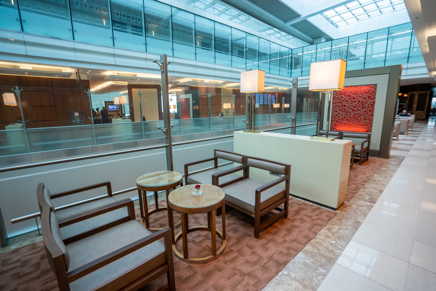 In addition to spaces for relaxation, each wing in the lounge features well-equipped business centres, play areas for children, and some shopping facilities.