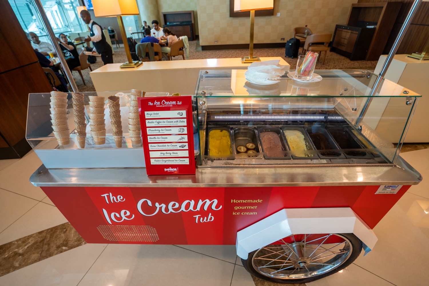 Some highlights of the dining experience included bottles of Moët & Chandon Champagne at the bar, adding a hint of luxury, as well as an ice cream cart that also looked quite attractive – not that it was a wise idea to entertain either of these indulgences on such an early-morning layover.