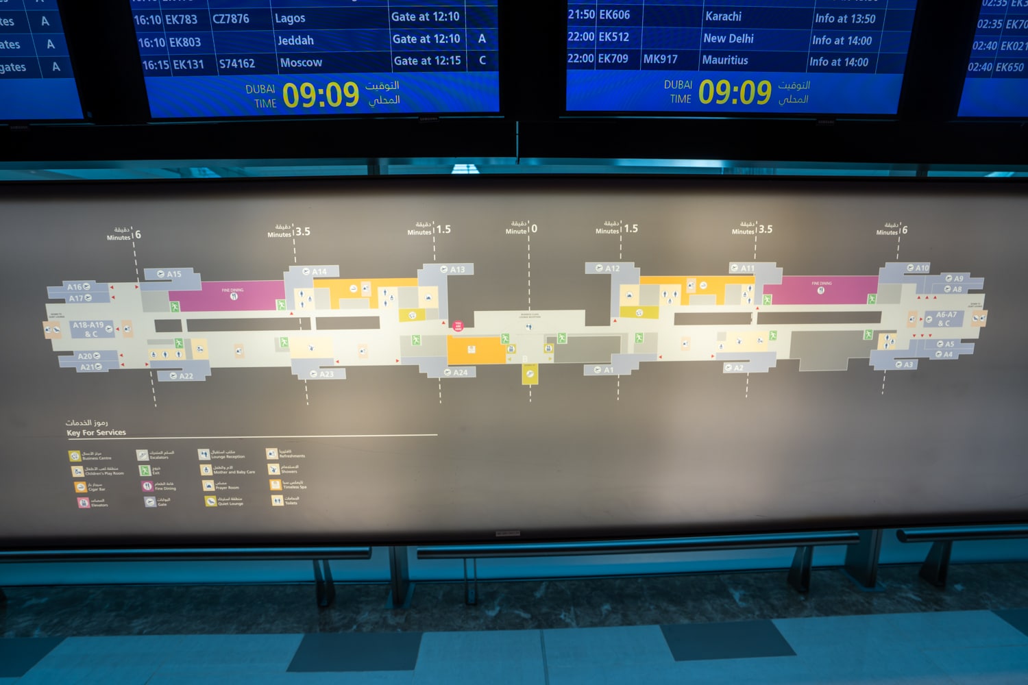 The boarding gates are fitted for Emirates’s flagship double-decker Airbus A380s, although plenty of routes served by the Boeing 777 call for boarding from Concourse A as well.