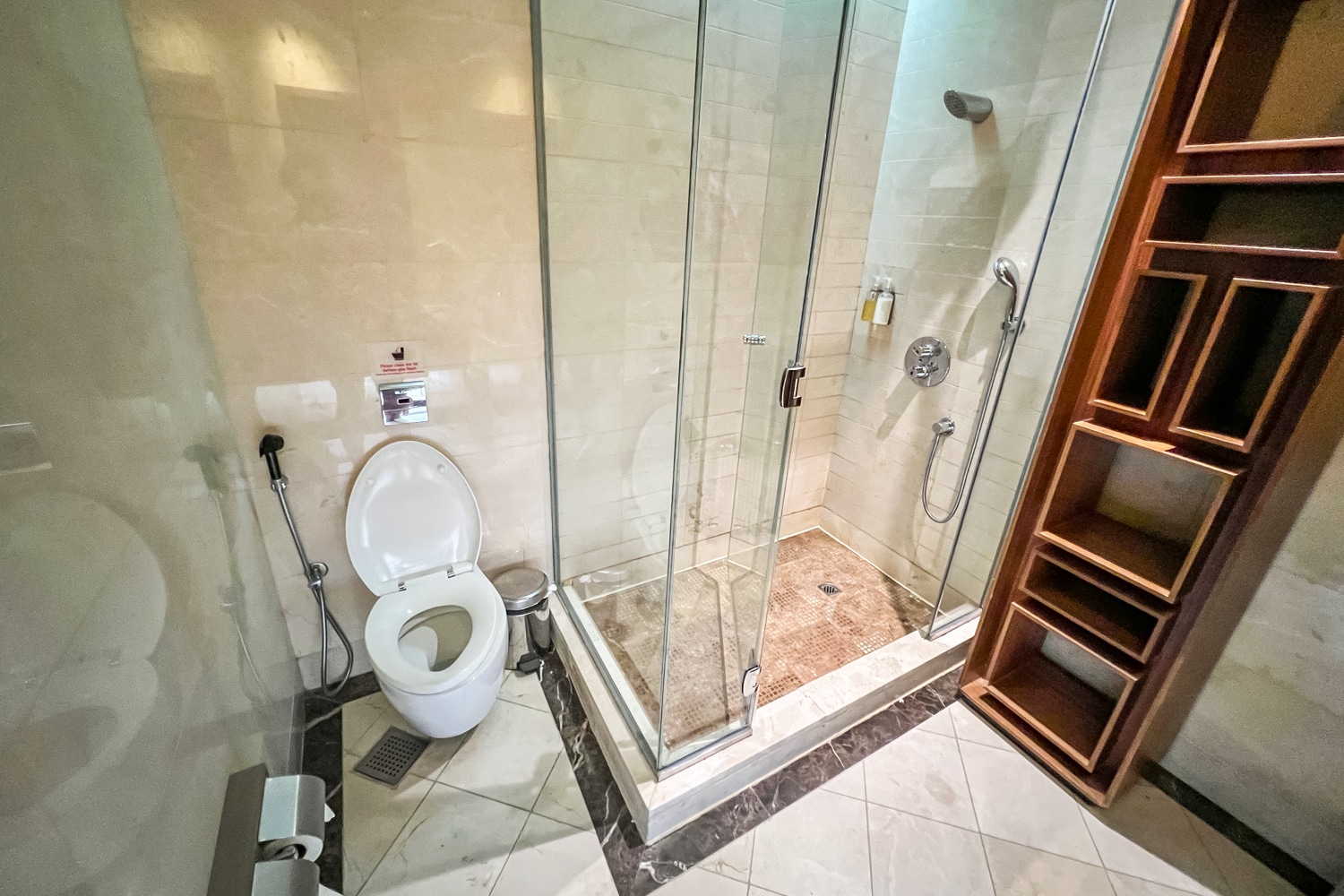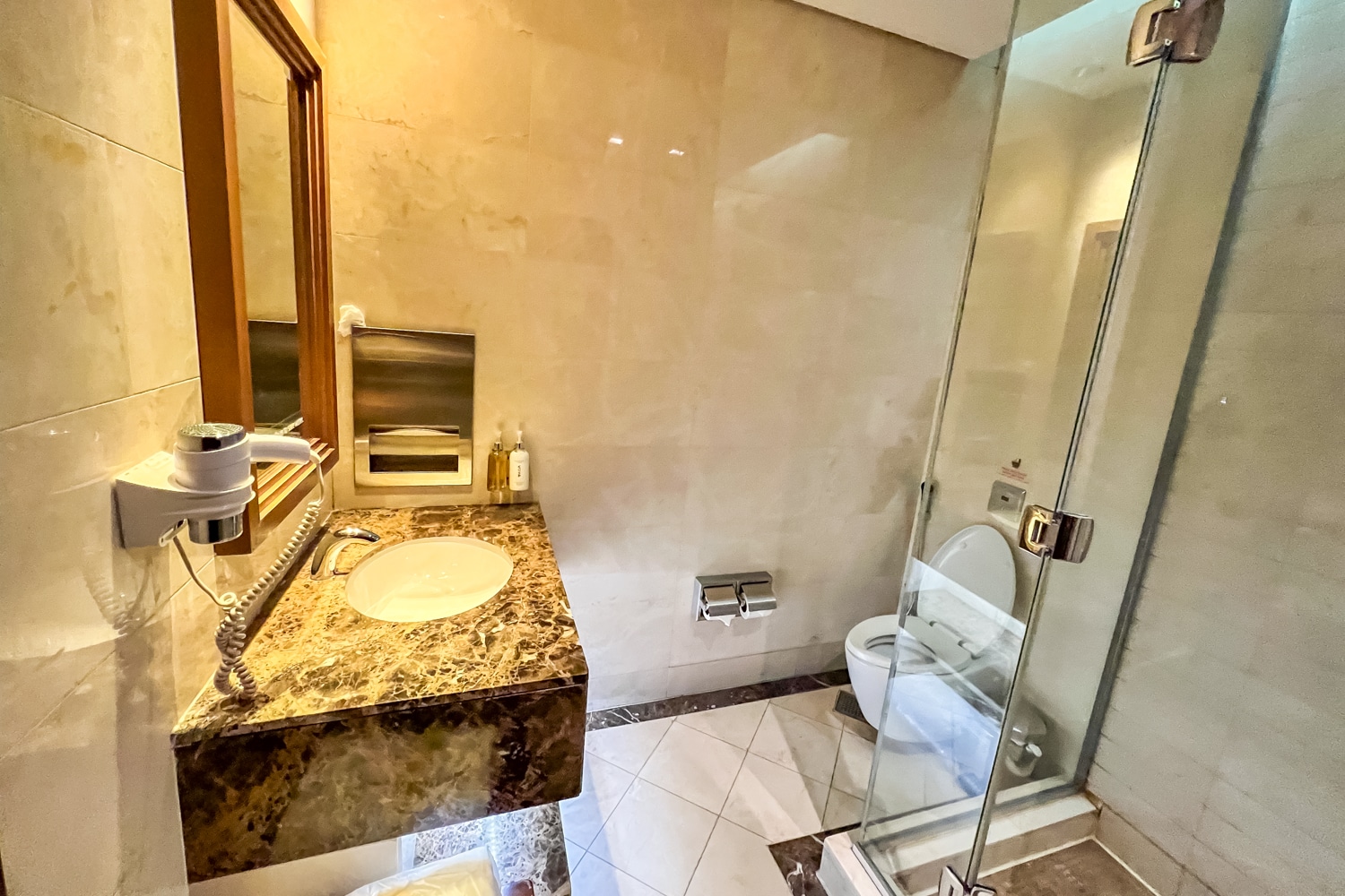 Each shower suite comes with a sink, toilet, and shower. I’d say that these are a step below the world’s best business class lounges, and I found them to be on the smaller side and somewhat dated in appearance.