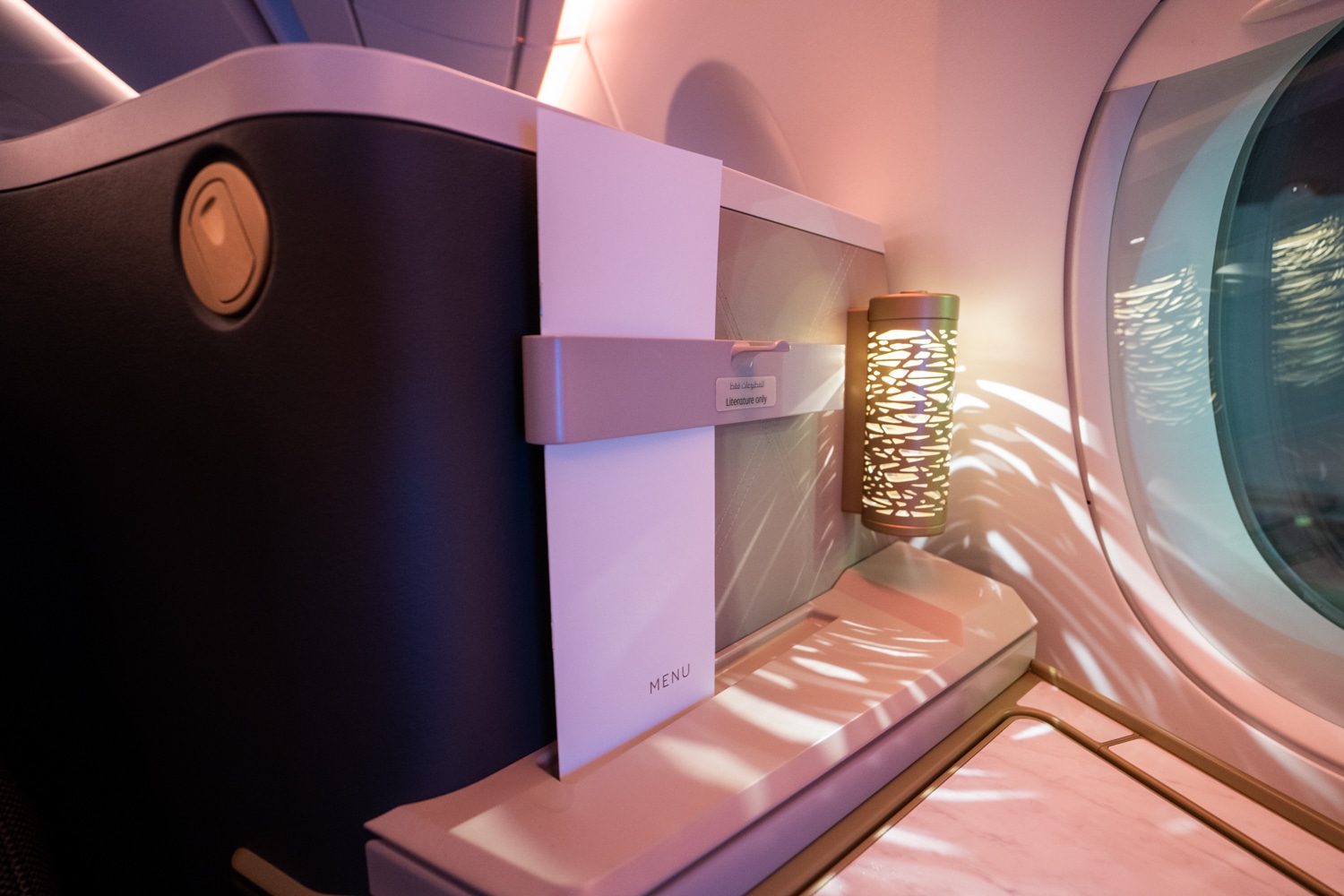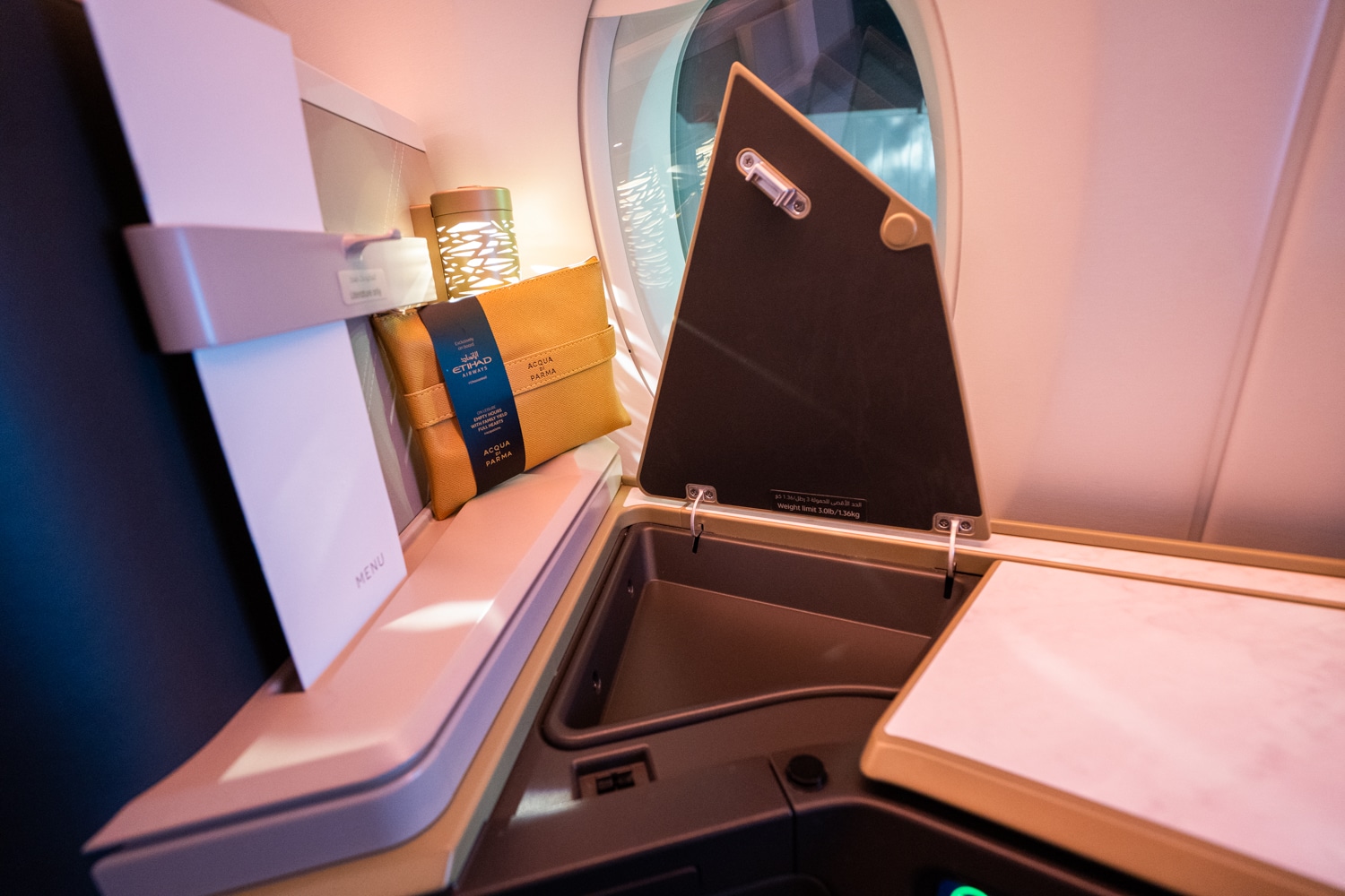 The cabin is immaculate and striking, while the high-tech seat is complemented with ample storage space and superior comfort. In my opinion, it is a meaningful improvement over the business class cabin found in Etihad Airways’s Boeing 787 Dreamliner.
