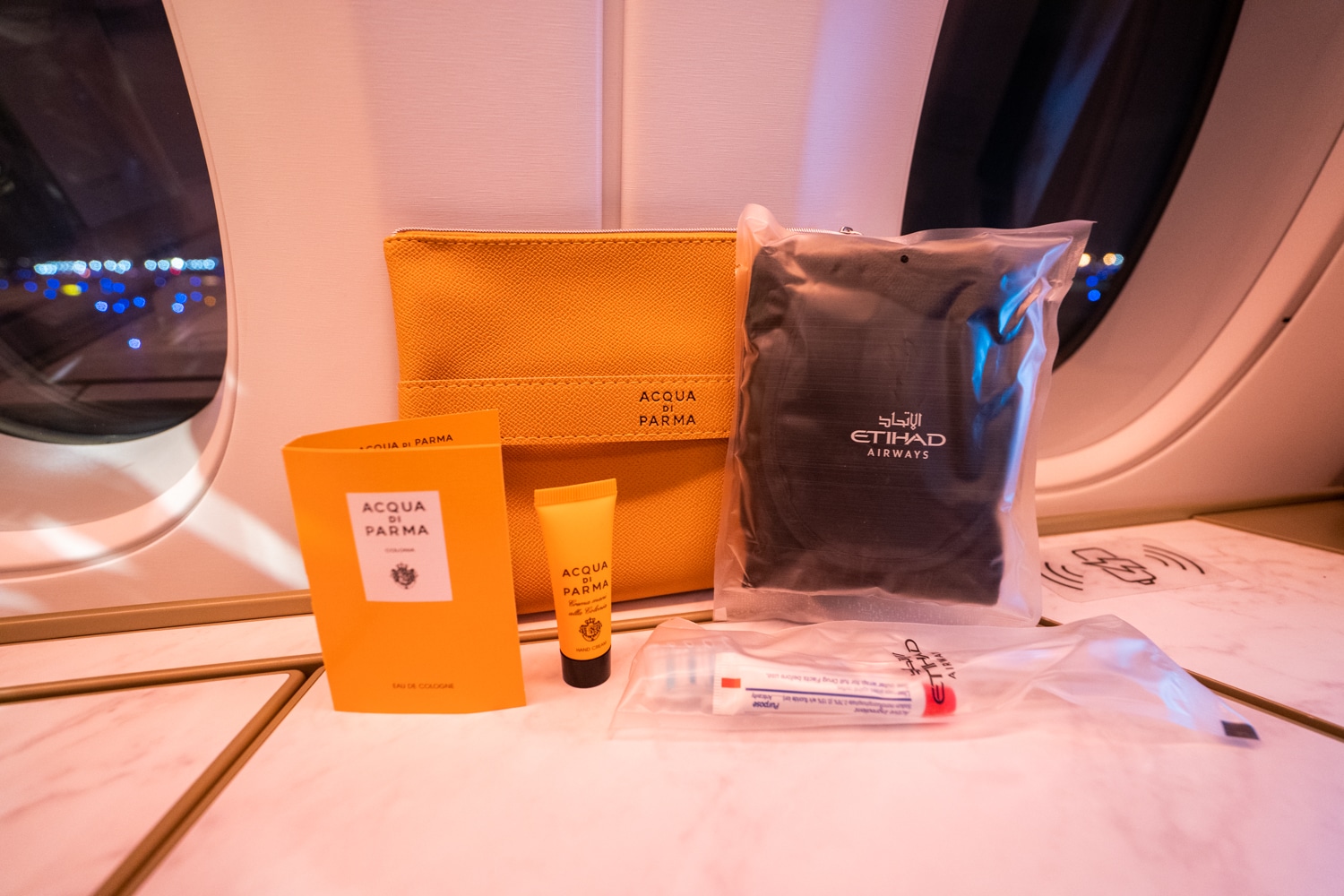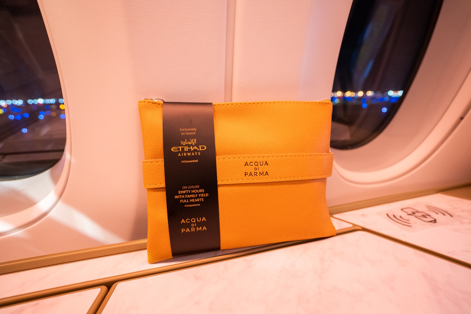 While sipping on my crisp glass of Champagne, I took the opportunity to browse through the Acqua di Parma amenity kit.