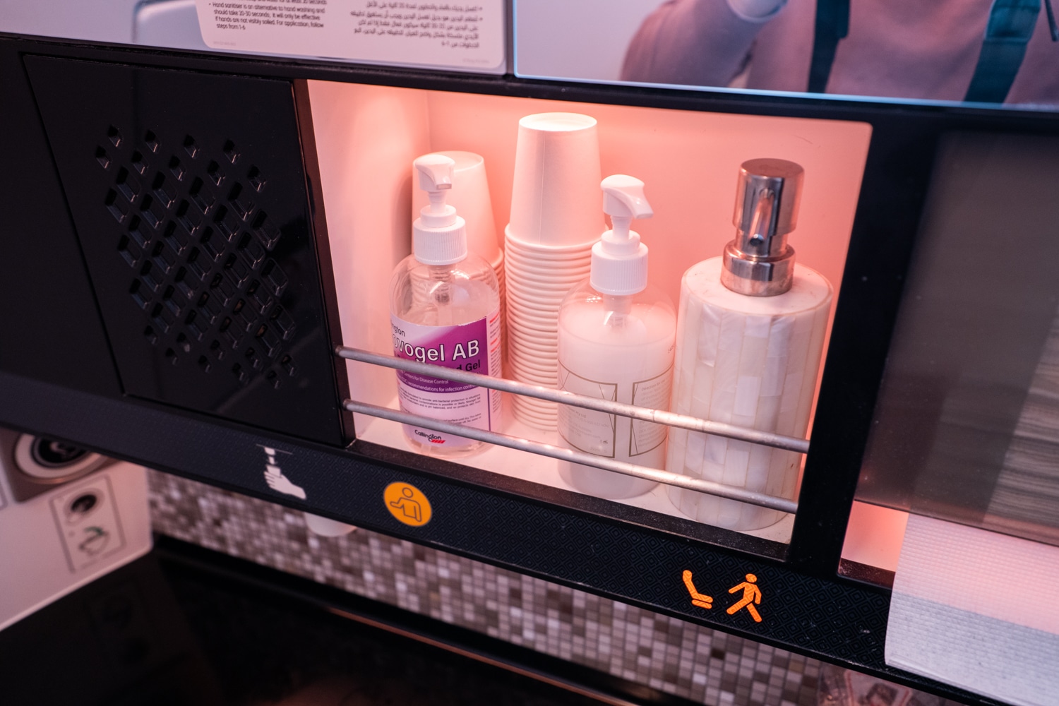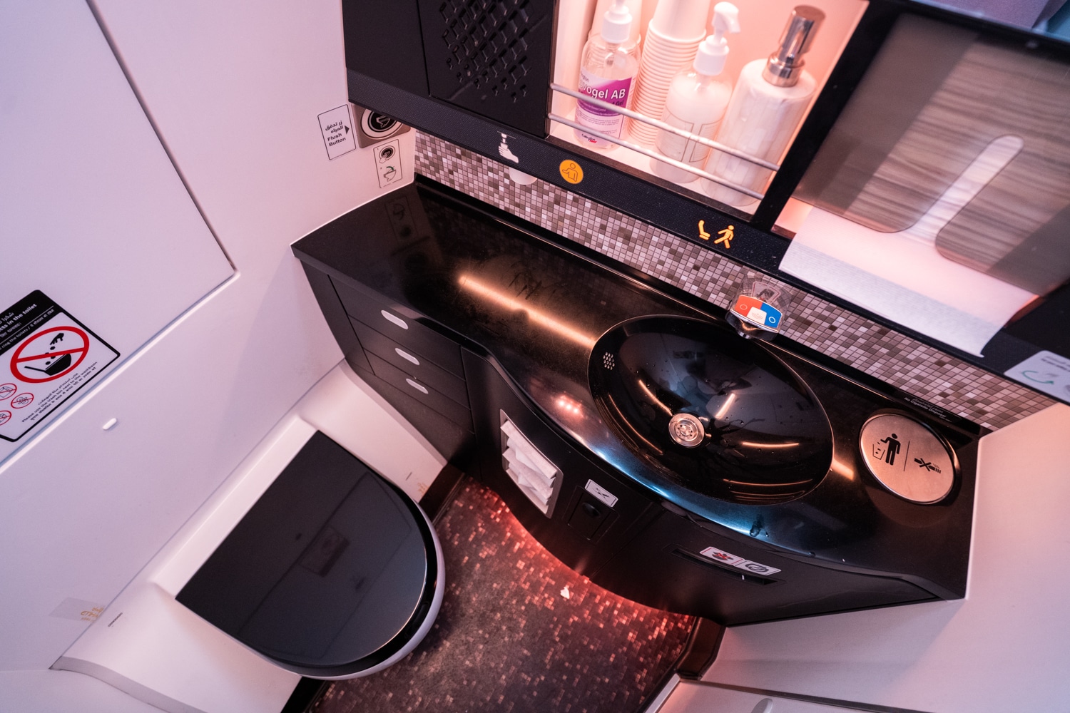 After the meal service, I was looking forward to some rest, so I visited the Airbus A350-1000’s restroom to freshen up before bed.