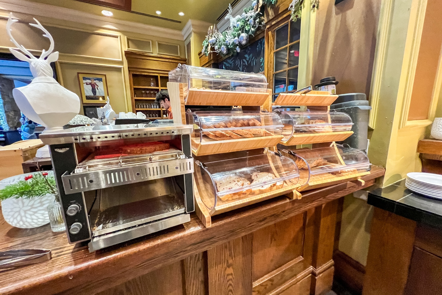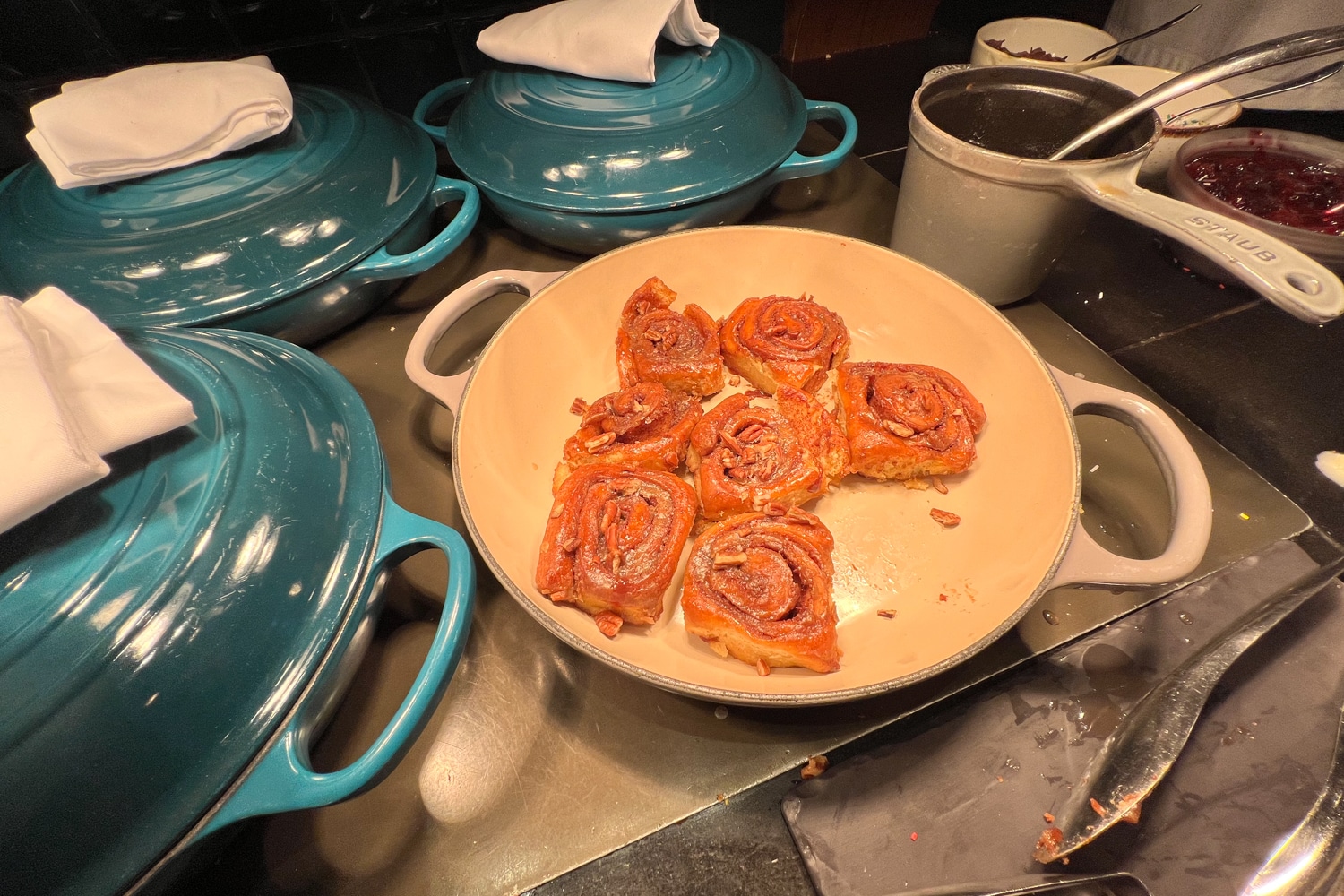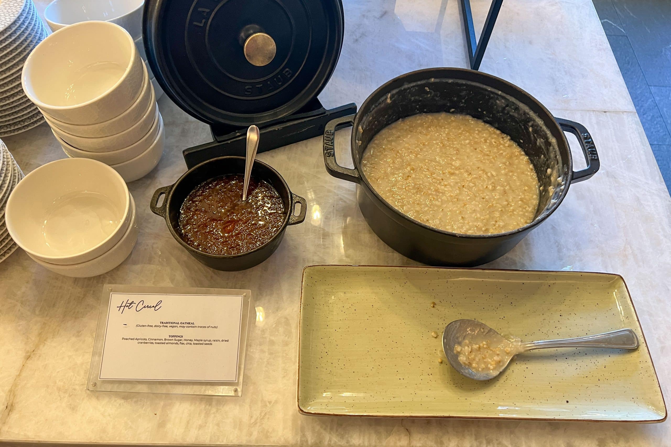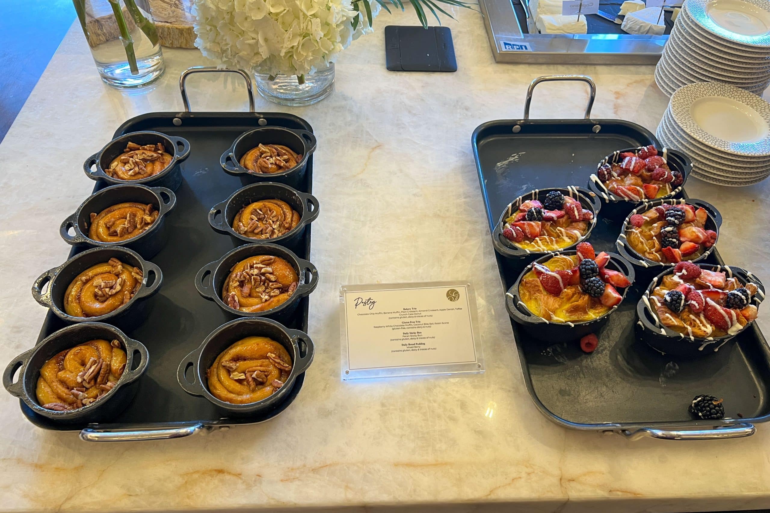 What’s more, the breakfast selection also featured an assortment of baked goods, including sticky buns and bread pudding. To round things off, there was a choice of hot cereal and freshly baked bread, served with a selection of four different types of jam and multiple spreads.