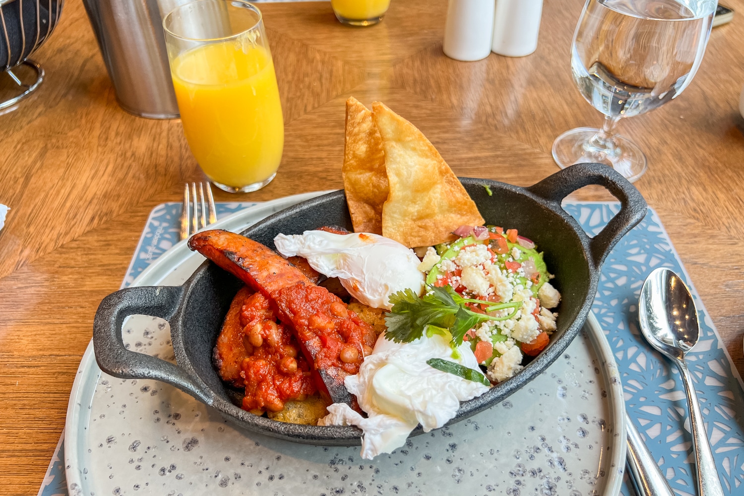 From the à la carte menu, I opted for the southwest skillet, while my partner Jessy decided on a traditional eggs Benedict with two glasses of freshly squeezed orange juice to kick off our day.