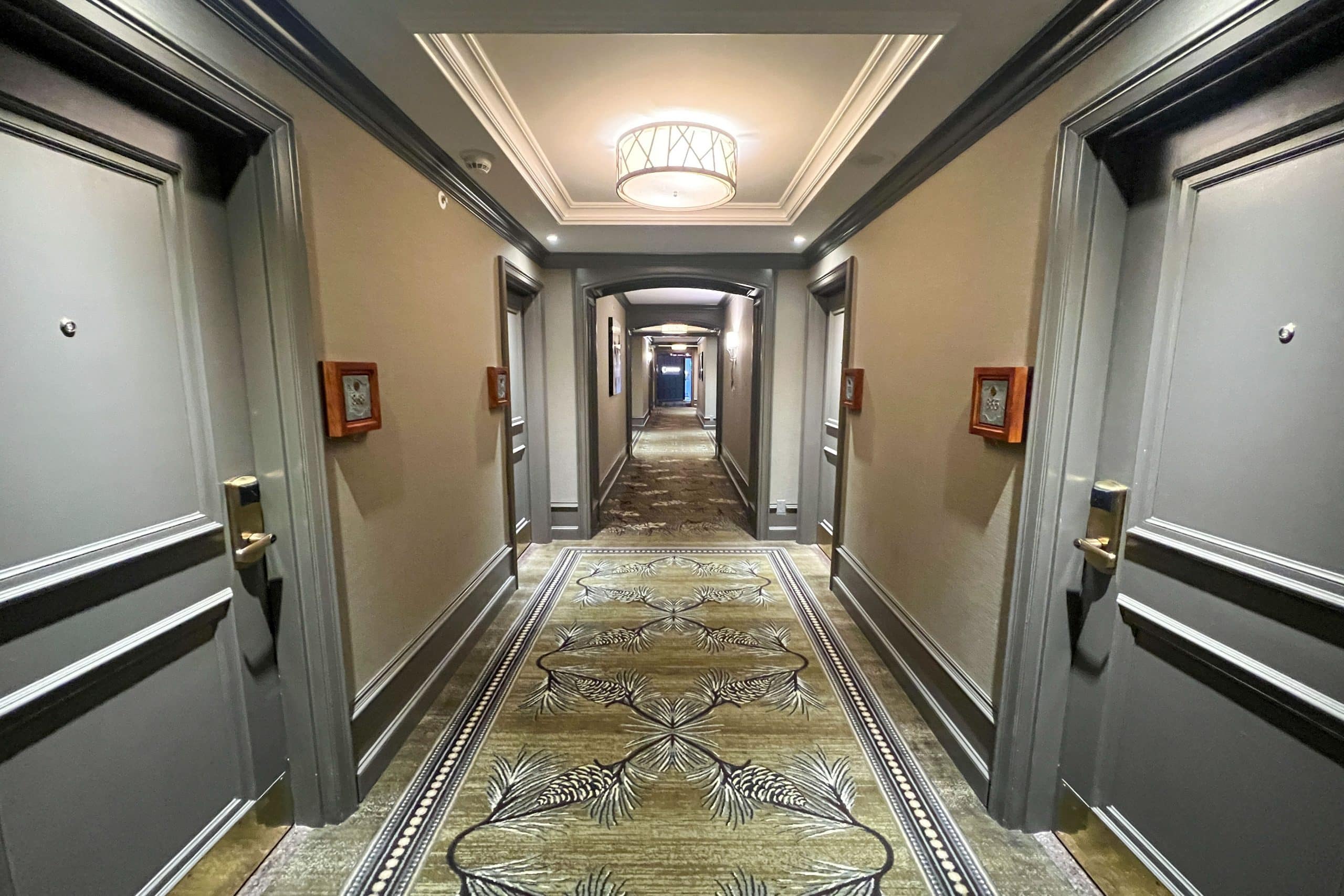 As I stepped out of the elevator and strolled towards my Fairmont Gold King Room, I noted the Gold Floor’s distinct hallways. The nature-inspired pattern of the floor and palette of green and grey earthy tones was lovely.
