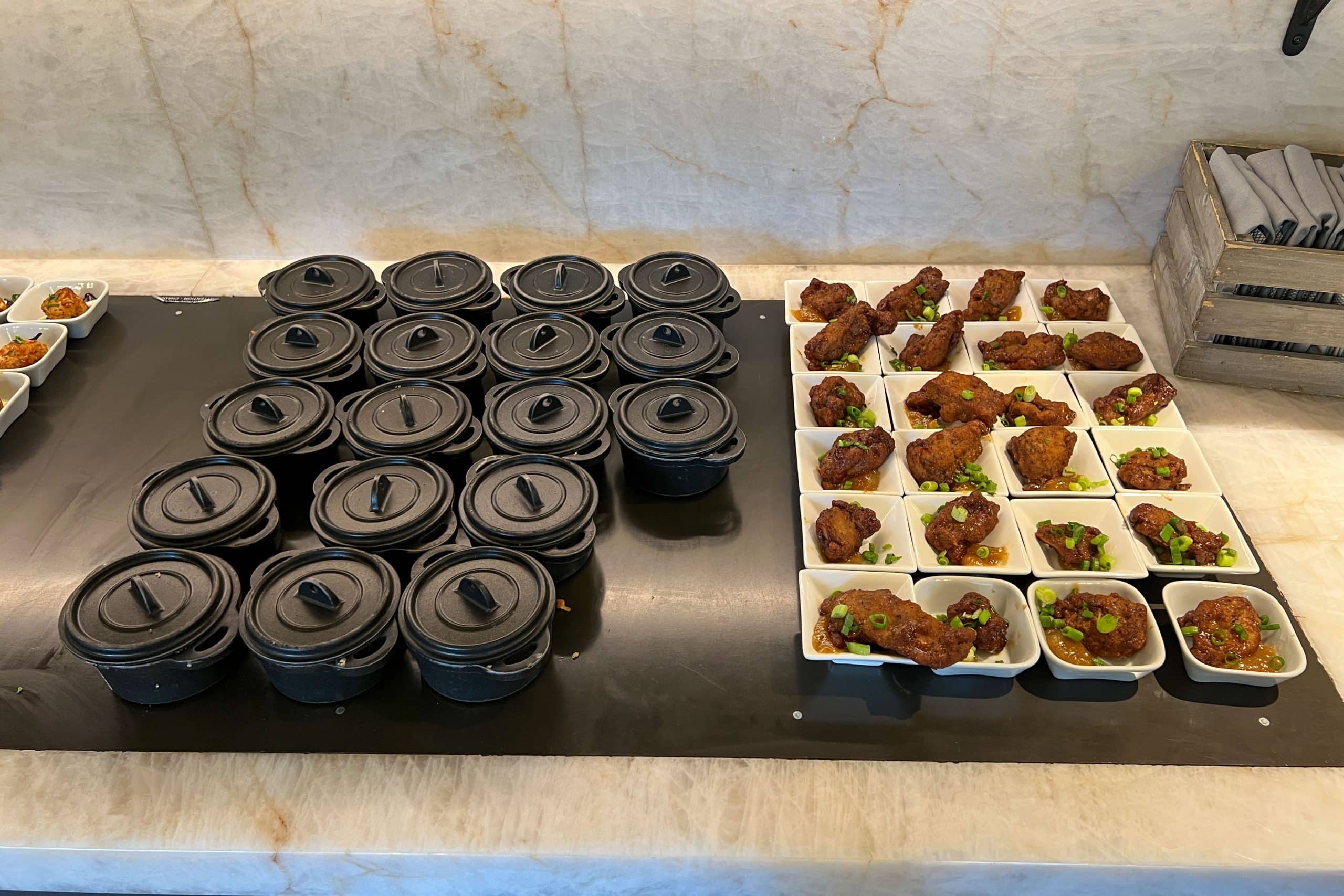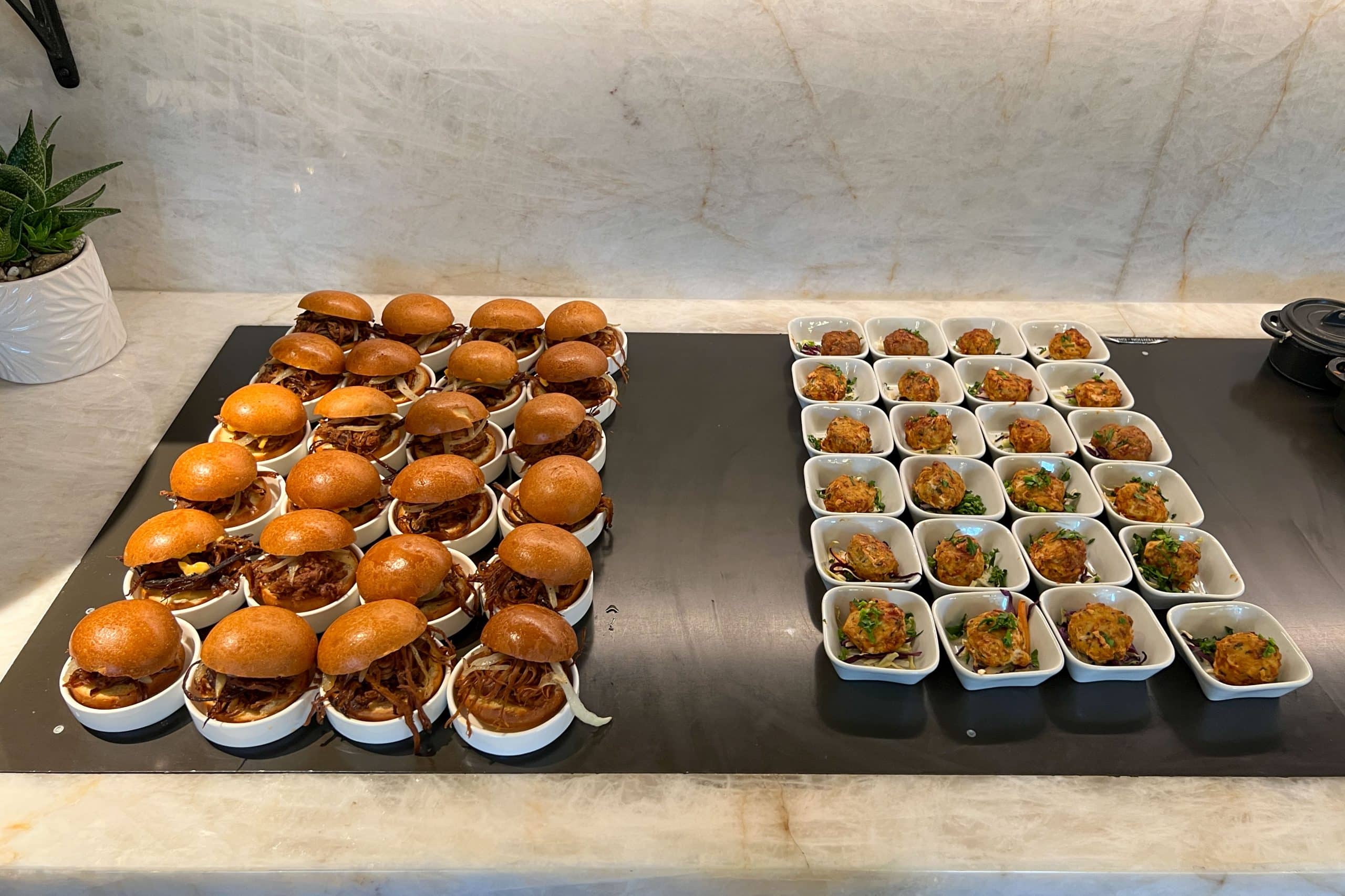 Moving on to the evening spread, the selection became even more savoury. Hot items included chicken wings and mini pulled pork sandwiches.