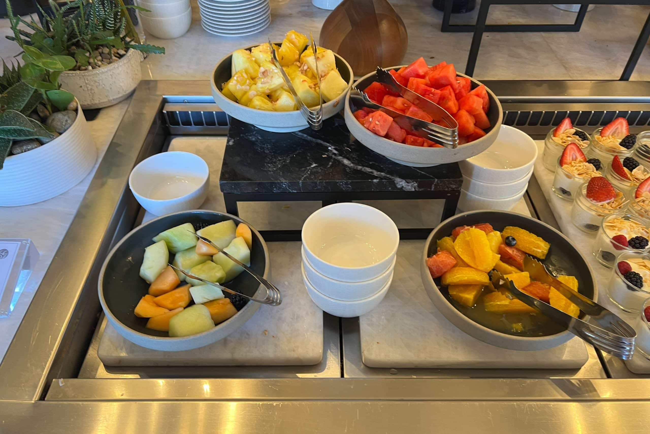 You can find an array of the usual suspects, including an array of pastries, as well as fruit, cured meats, and cheese.