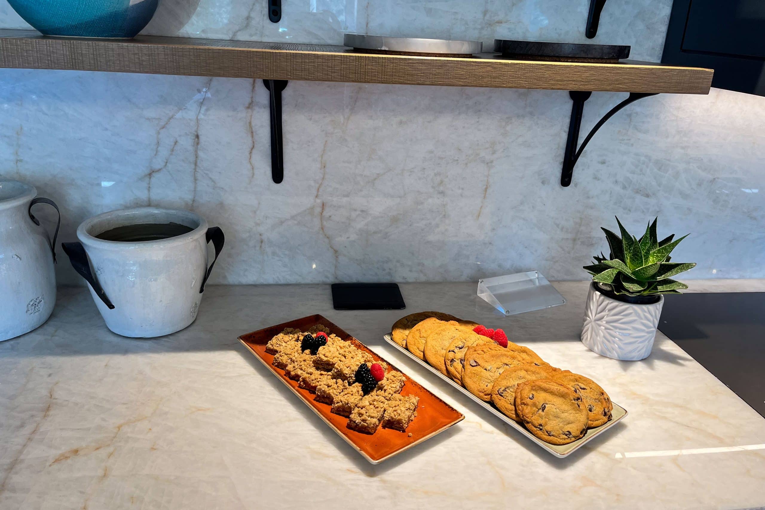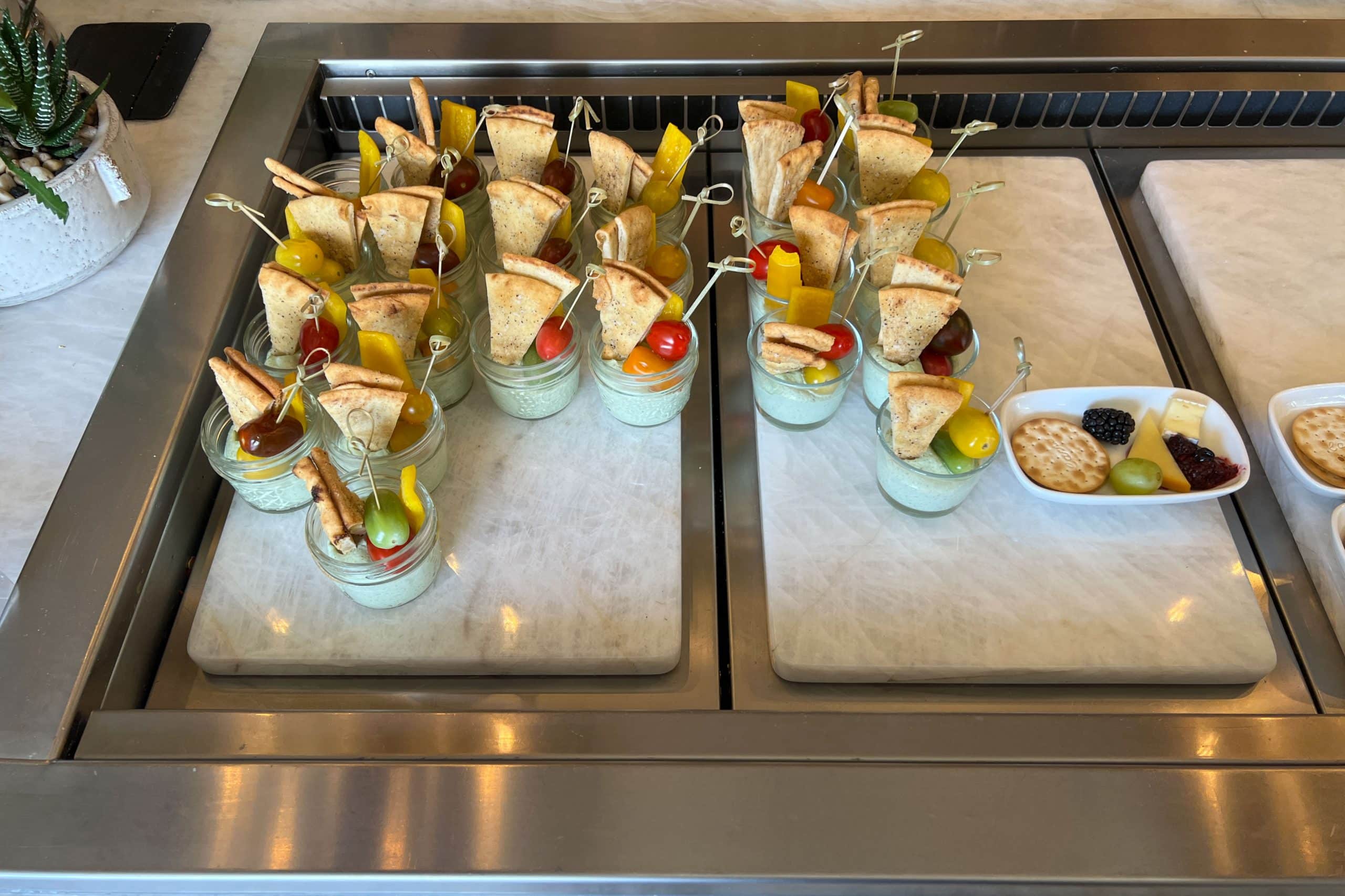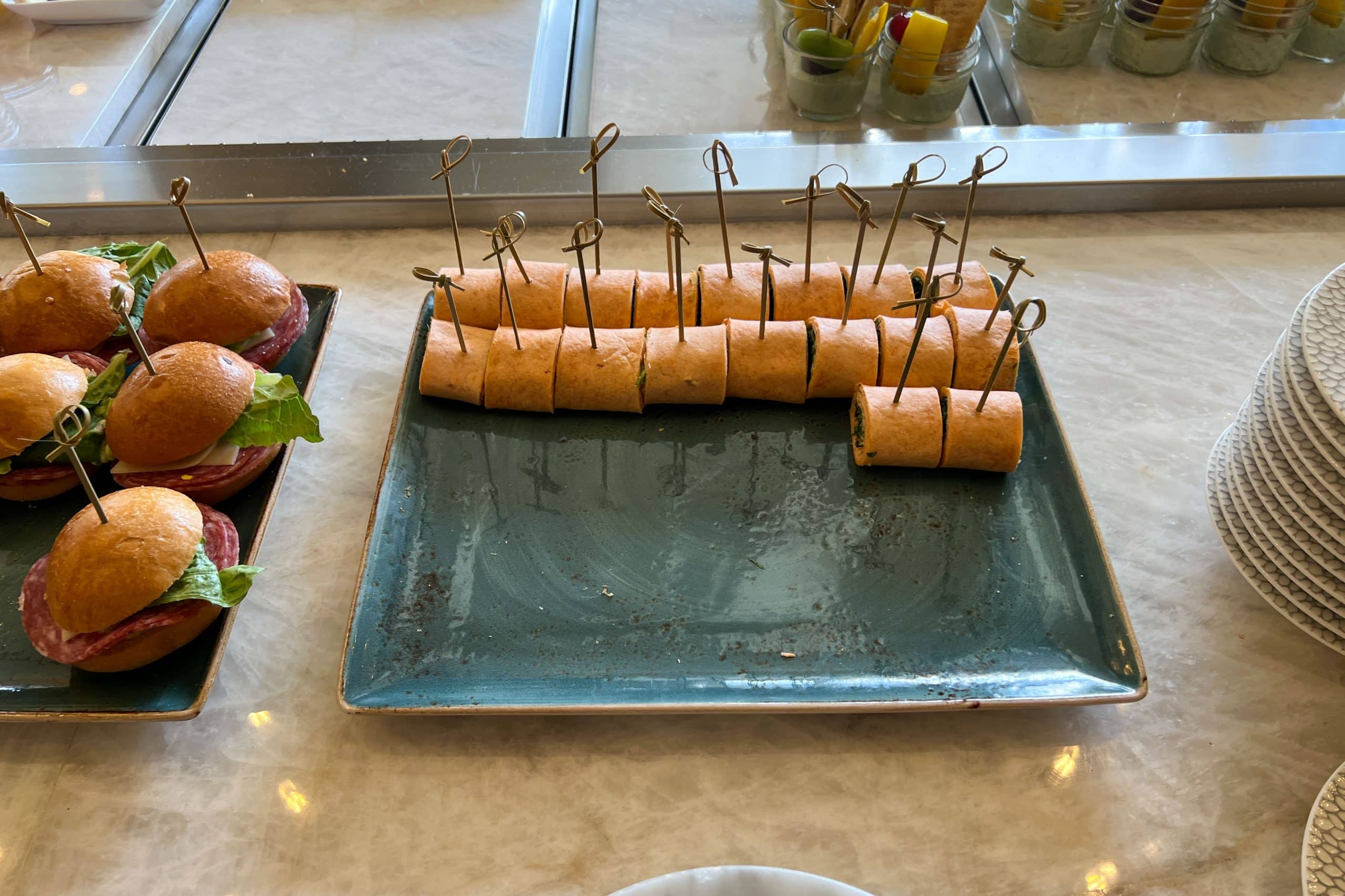Later in the day, the afternoon spread was just as impressive, featuring a variety of small bites like finger sandwiches, and sweets, as well as fruit.