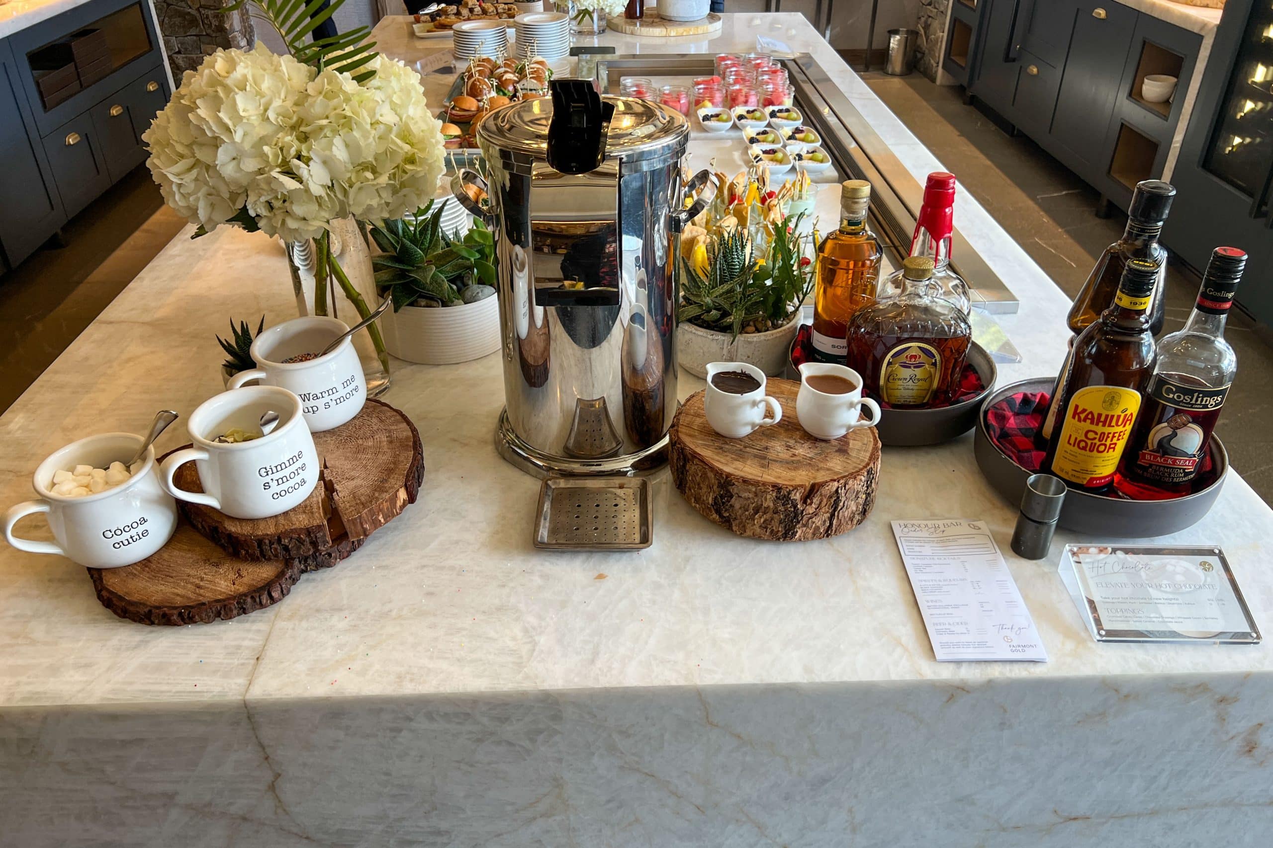 There was a beautifully displayed hot cocoa station, complete with marshmallows and liqueurs.