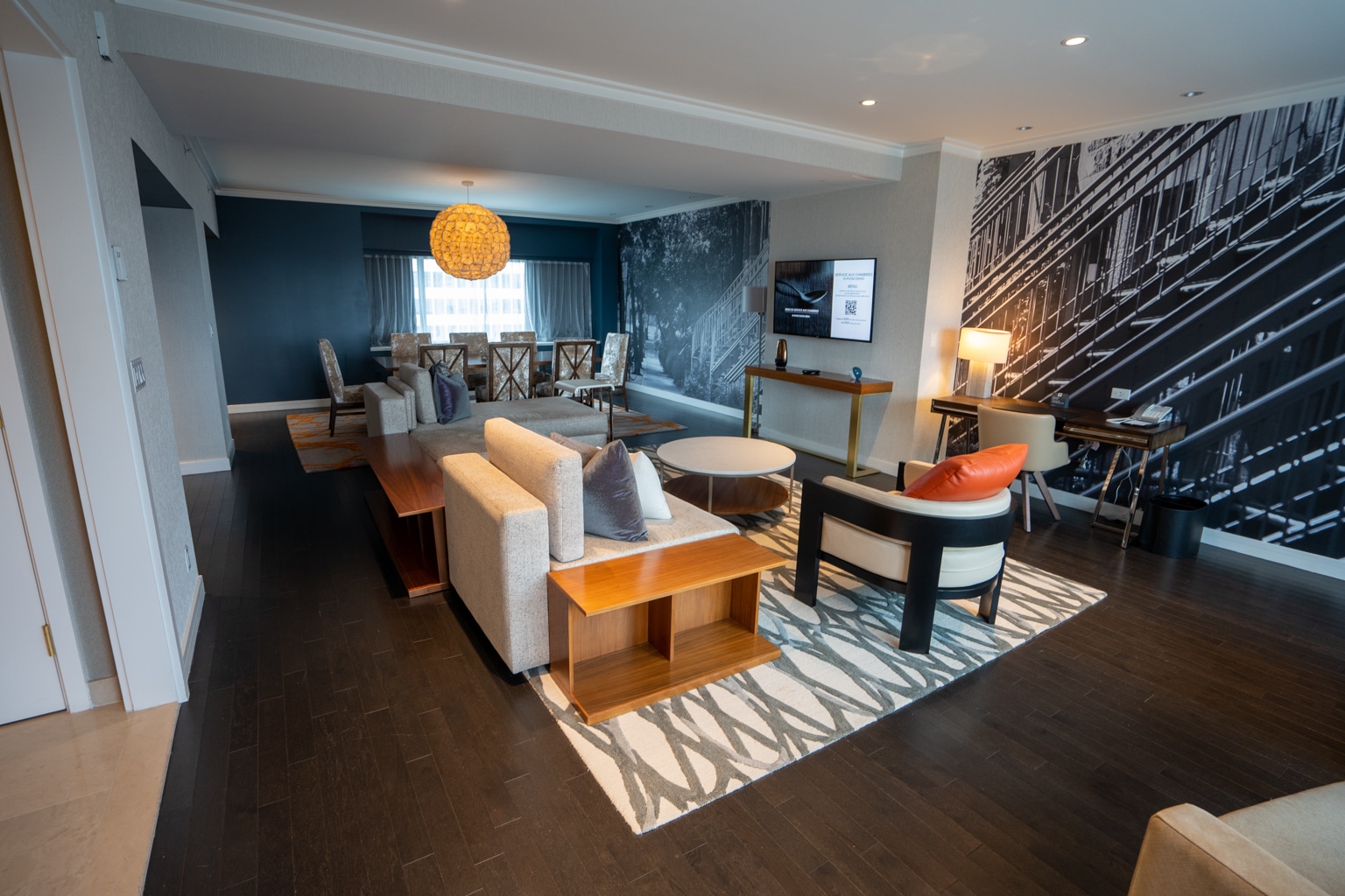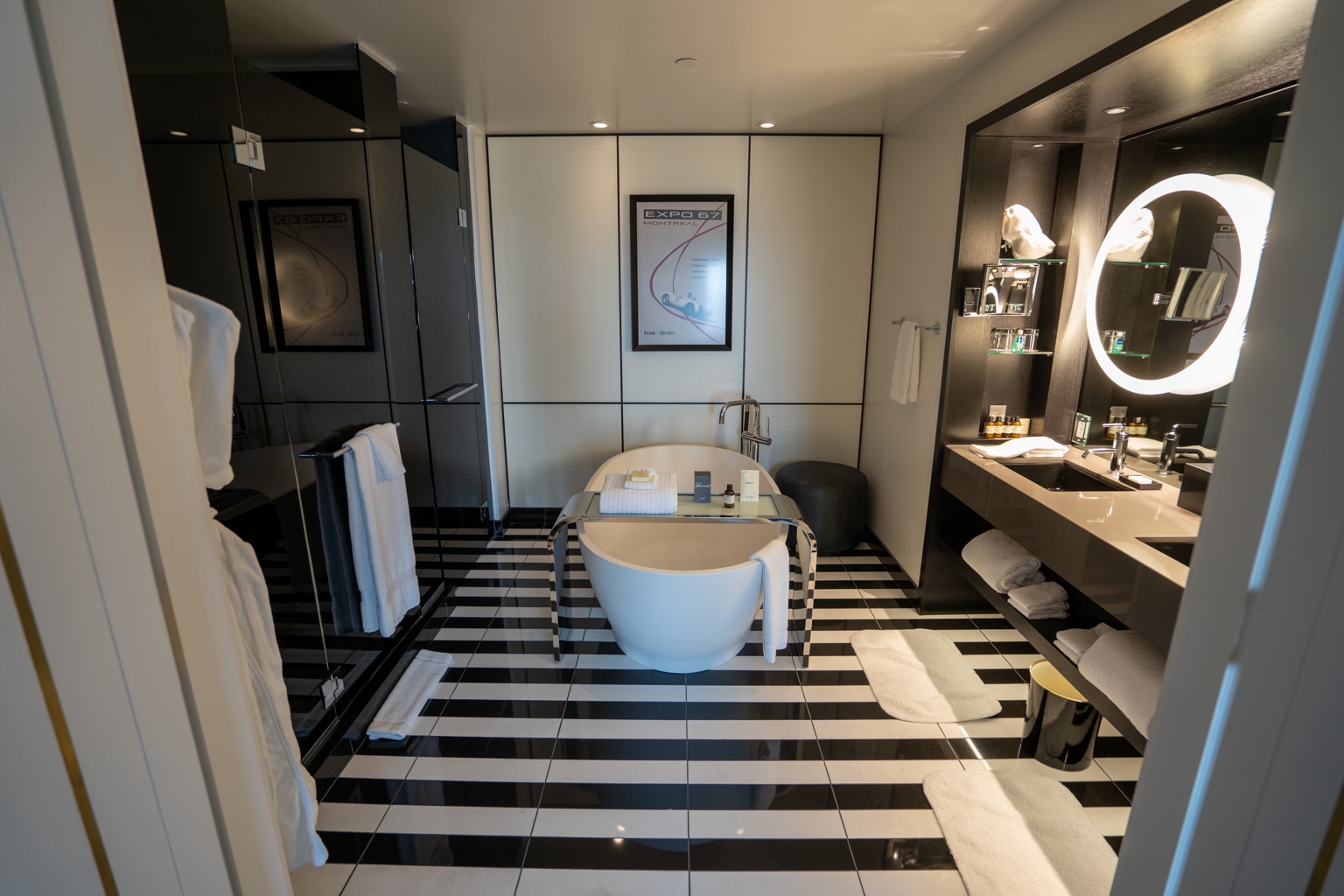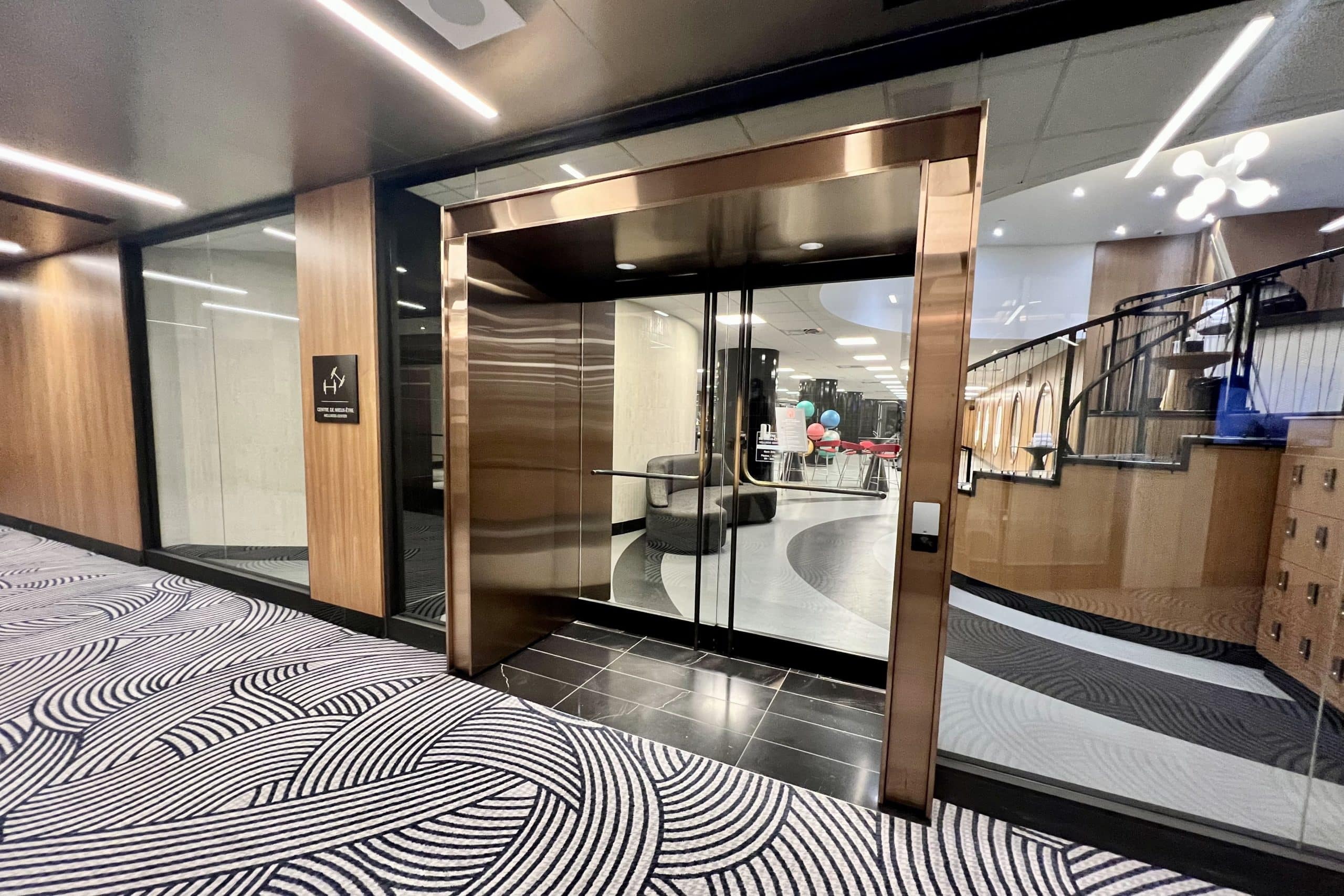 I loved the black-and-white artwork inspired by Montreal’s famous staircases, spanning the entire walls along the back of the room.