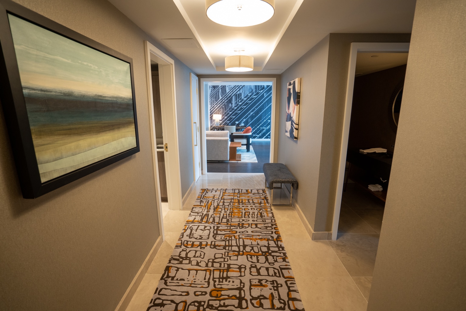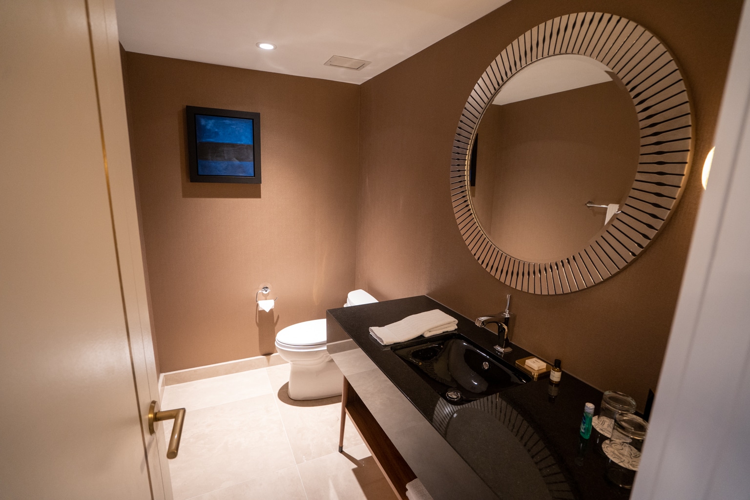 The suite also has a half bathroom on the other side, which is fairly comprehensive for this suite type and a great use of limited space.