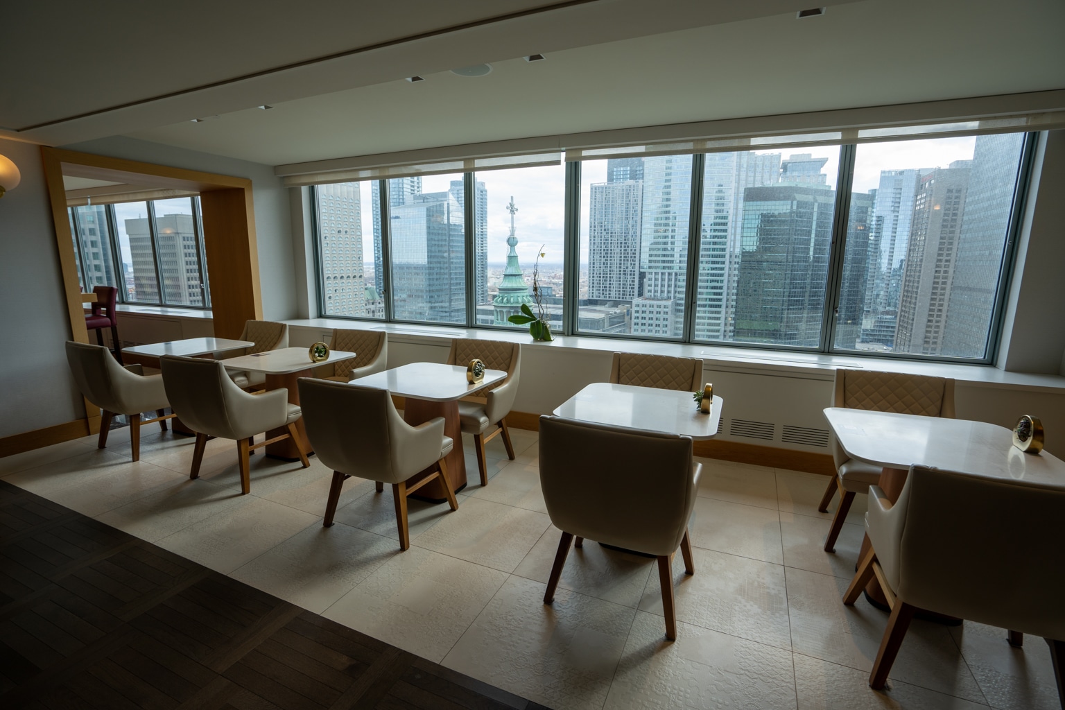 As with the other rooms, the Fairmont Room overlooks Downtown Montreal, with the views from each room varying based on which side of the hotel’s city block it occupies.