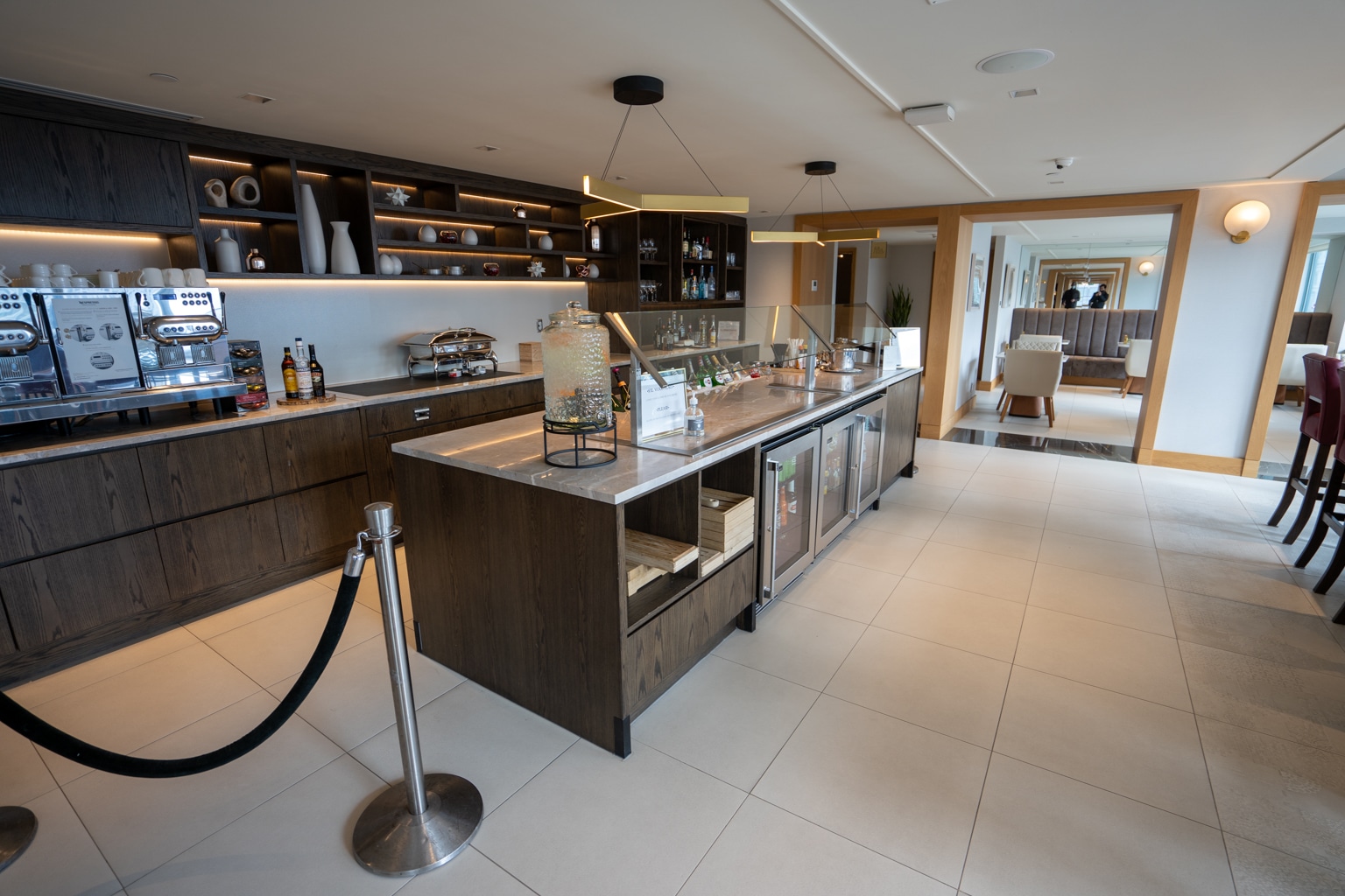 The lounge also offers complimentary non-alcoholic drinks throughout the day, with beer, wine, and spirits available via an honour bar system.