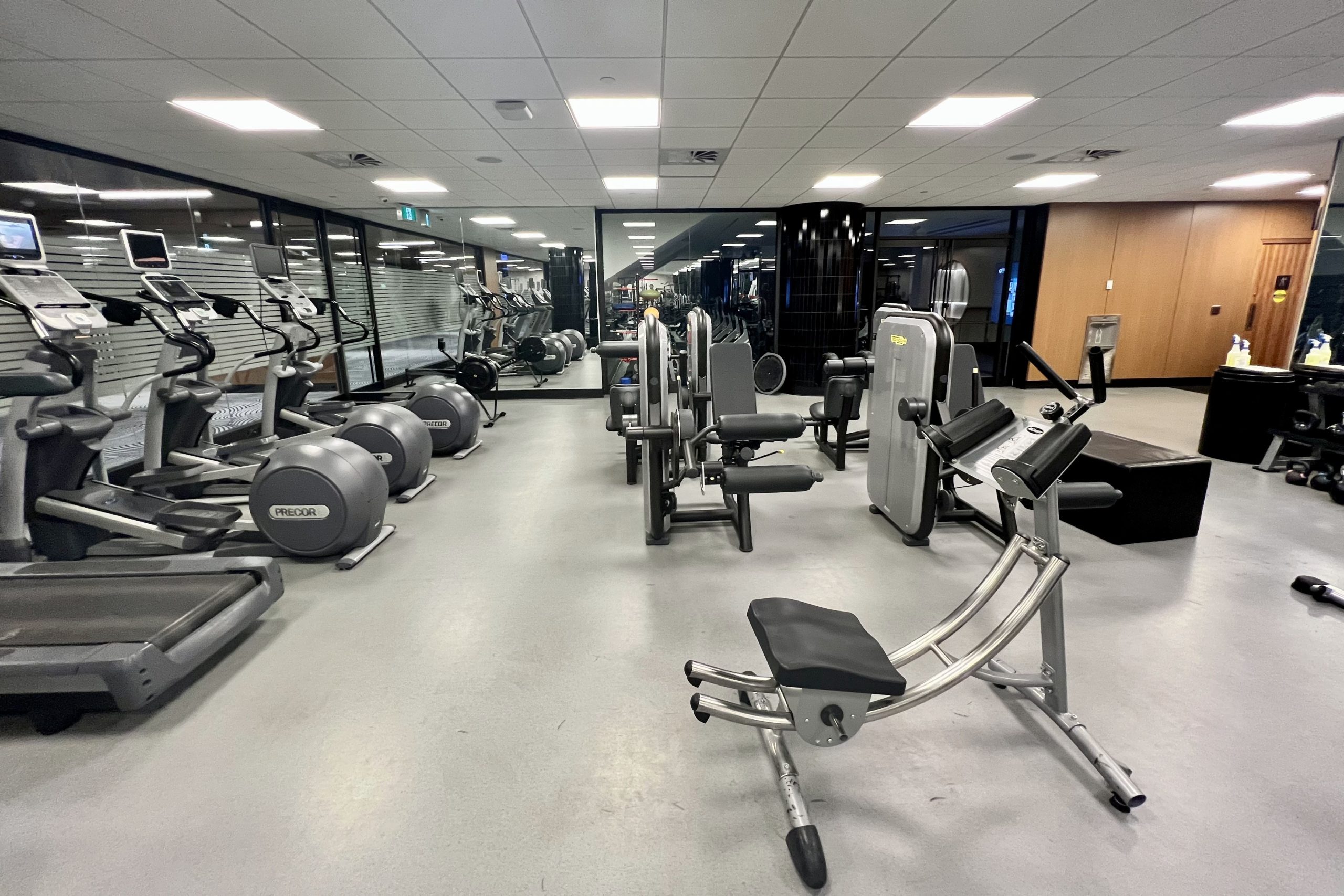 The gym at the Fairmont was substantially spacious and well-appointed, with brand new modern equipment brought in after the hotel renovations