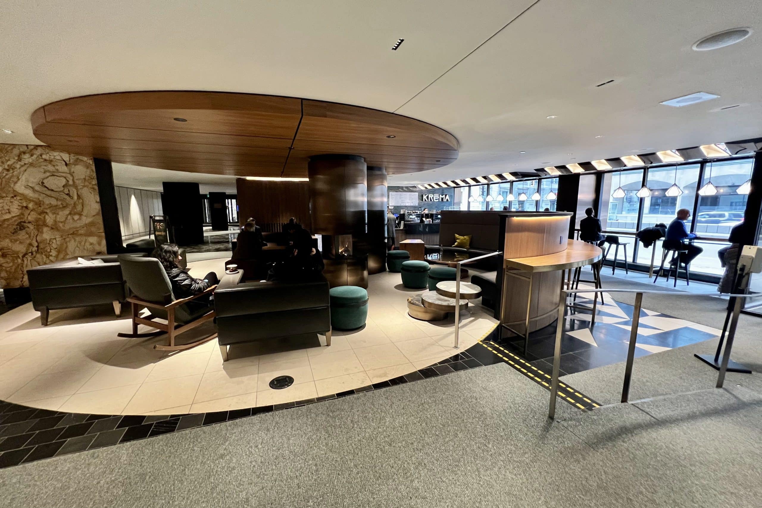 Kréma is the in-house cafe at the hotel, located in the lobby, offering coffee from local roasteries, fresh baked goods, and small bites.