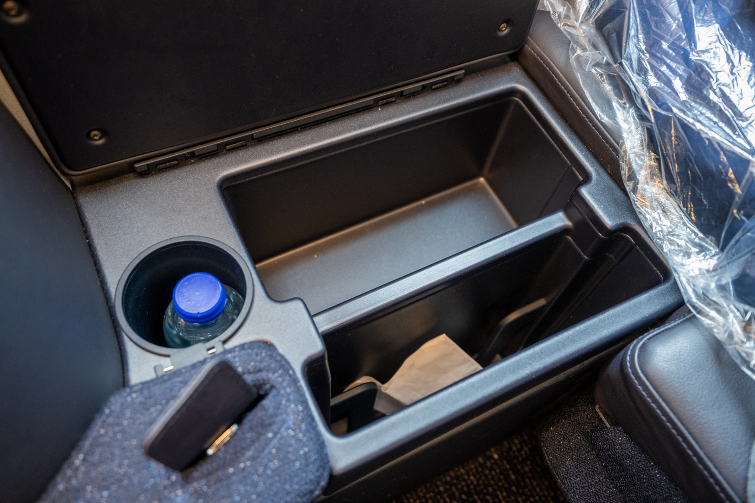 Inside here, you’ll find the entertainment controller, a headphone rest, and USB ports.