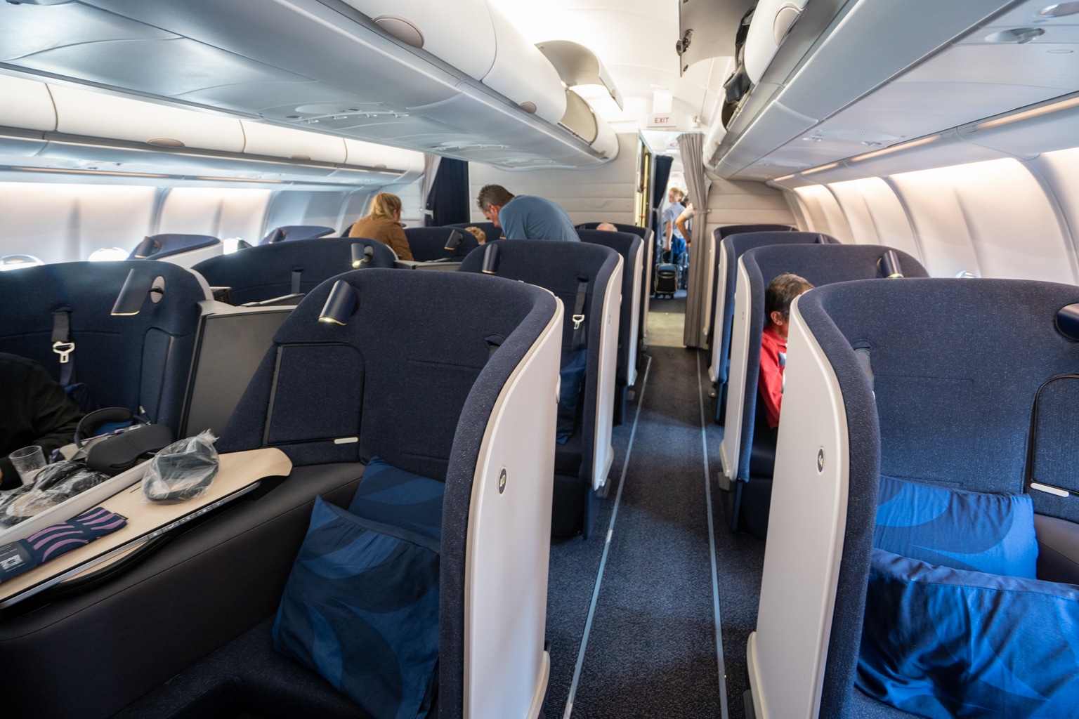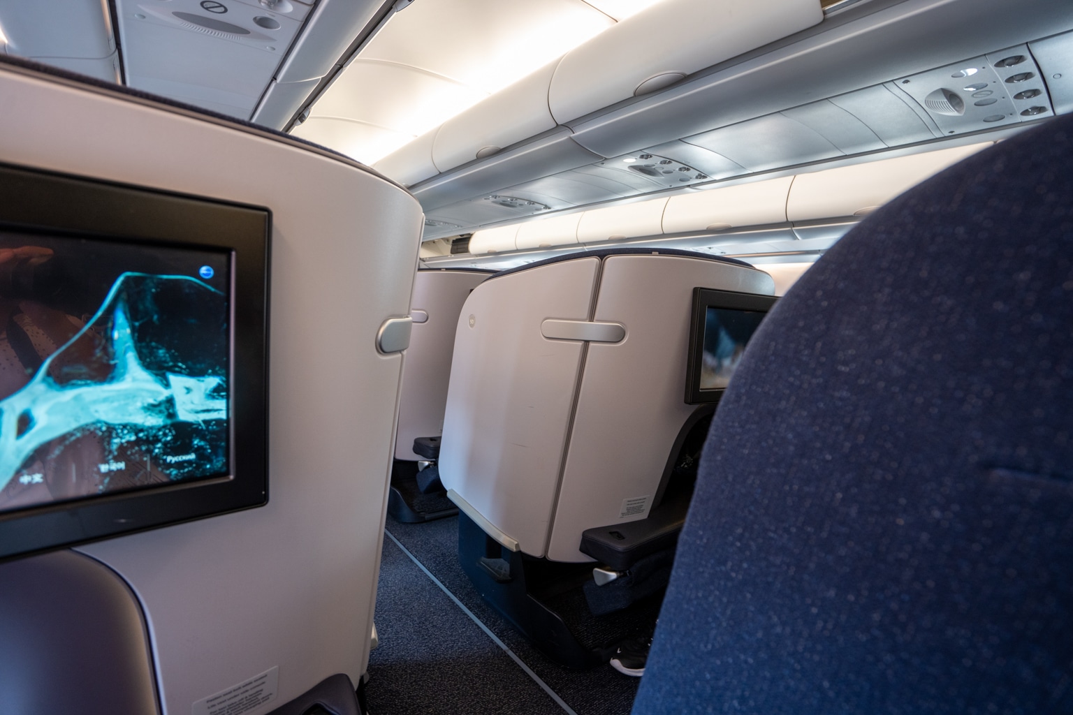 As I boarded the plane, I immediately took note of the clean and sleek appearance of the cabin, as well as the spaciousness of these new business class seats.
