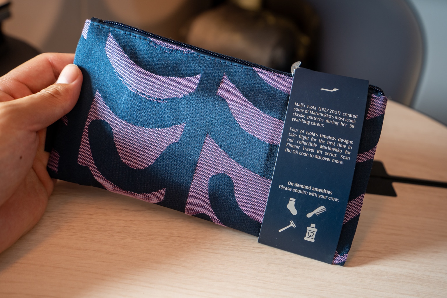 This amenity kit was conceived by the Finnish design house Marimekko, taking the form of a playful fabric pouch.