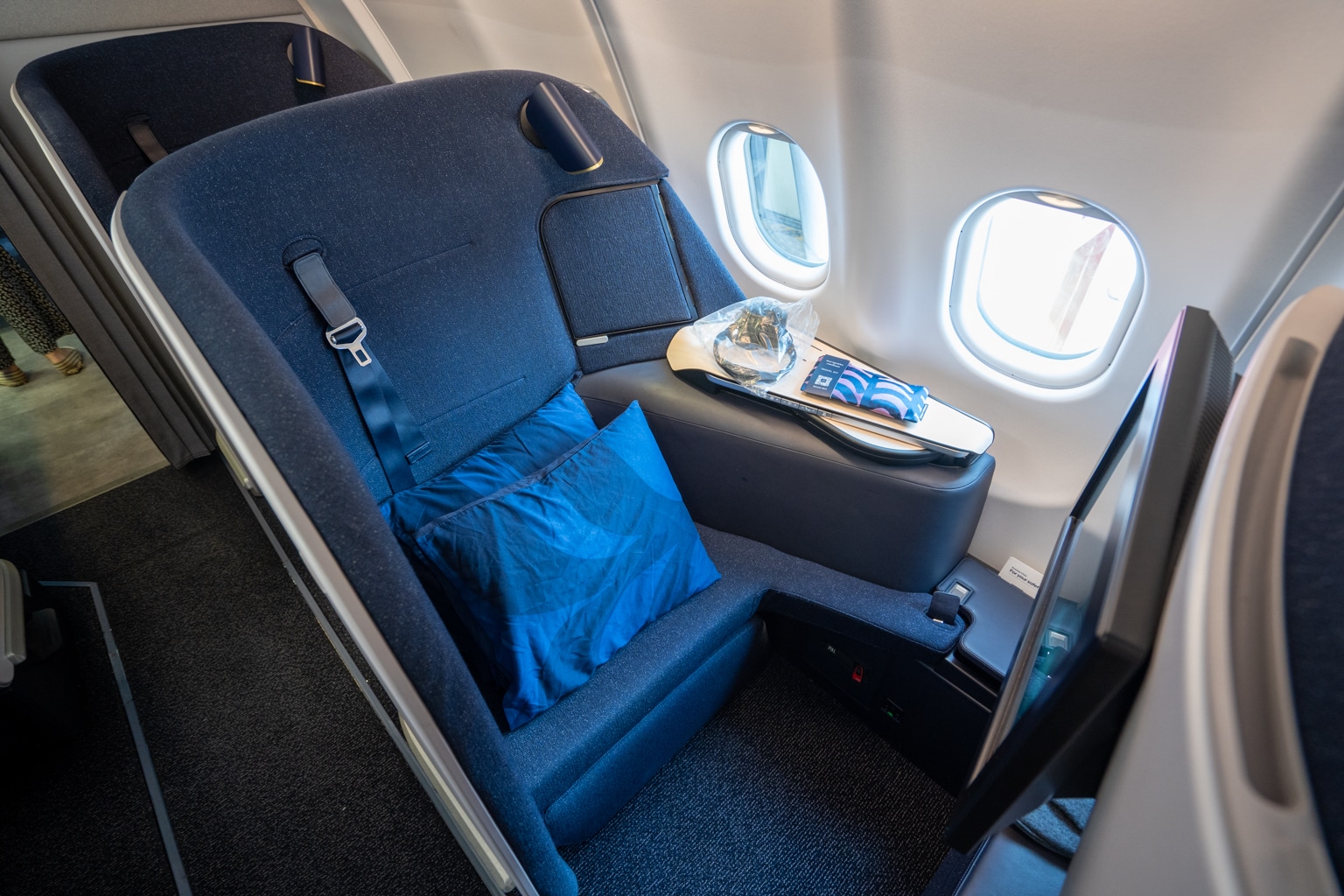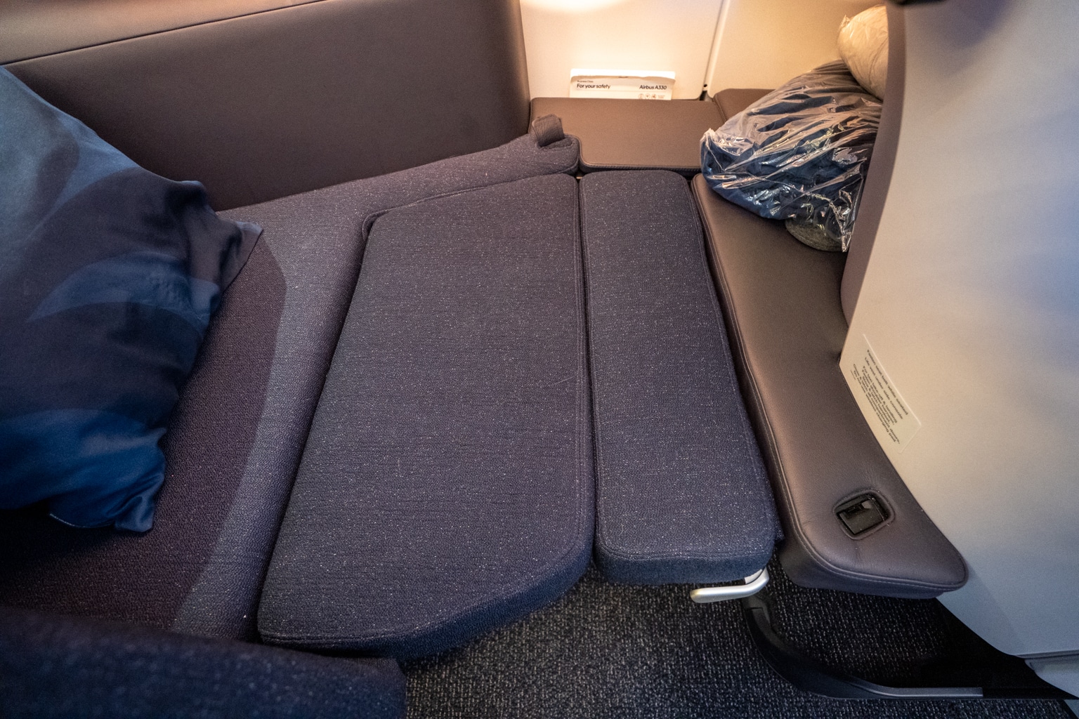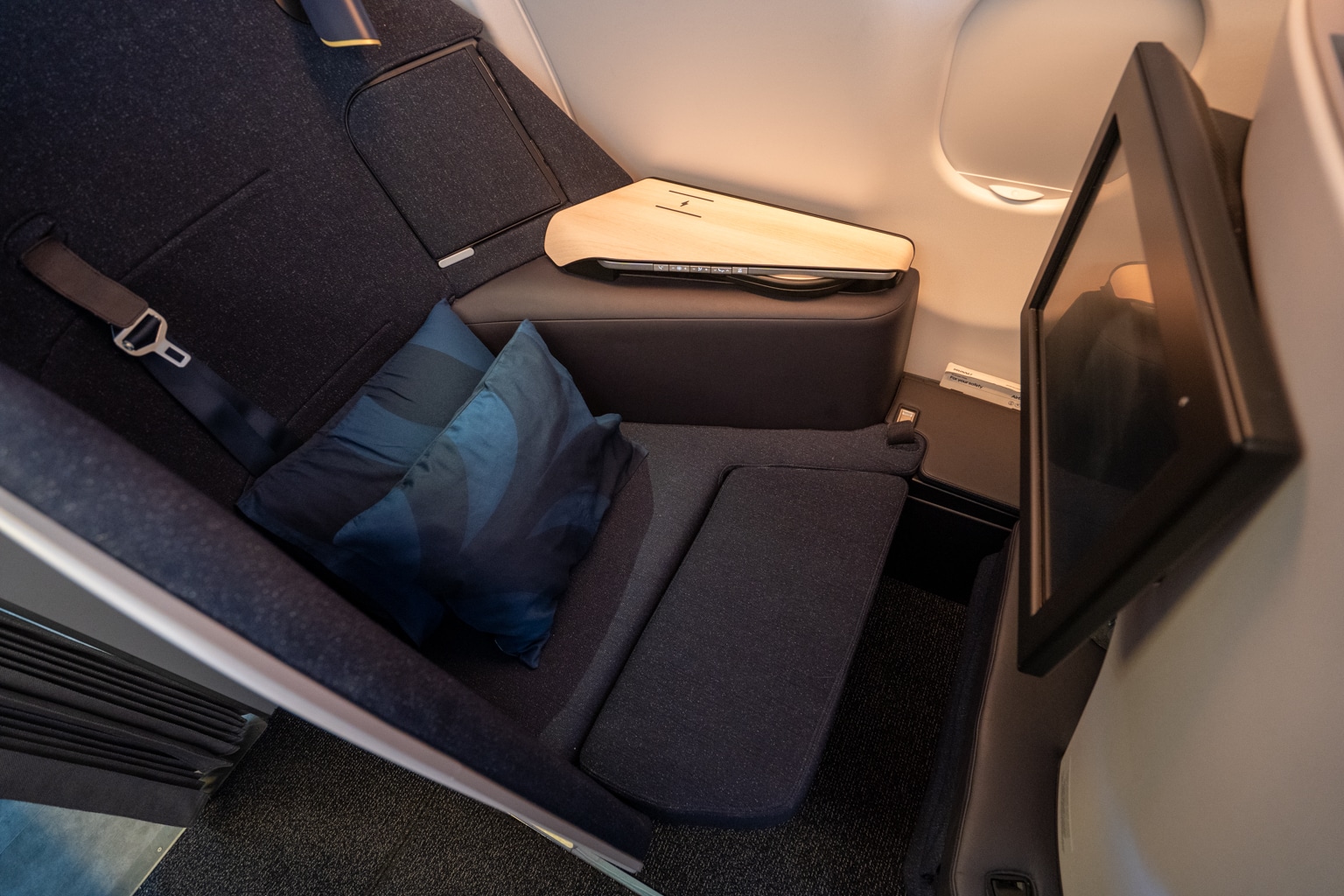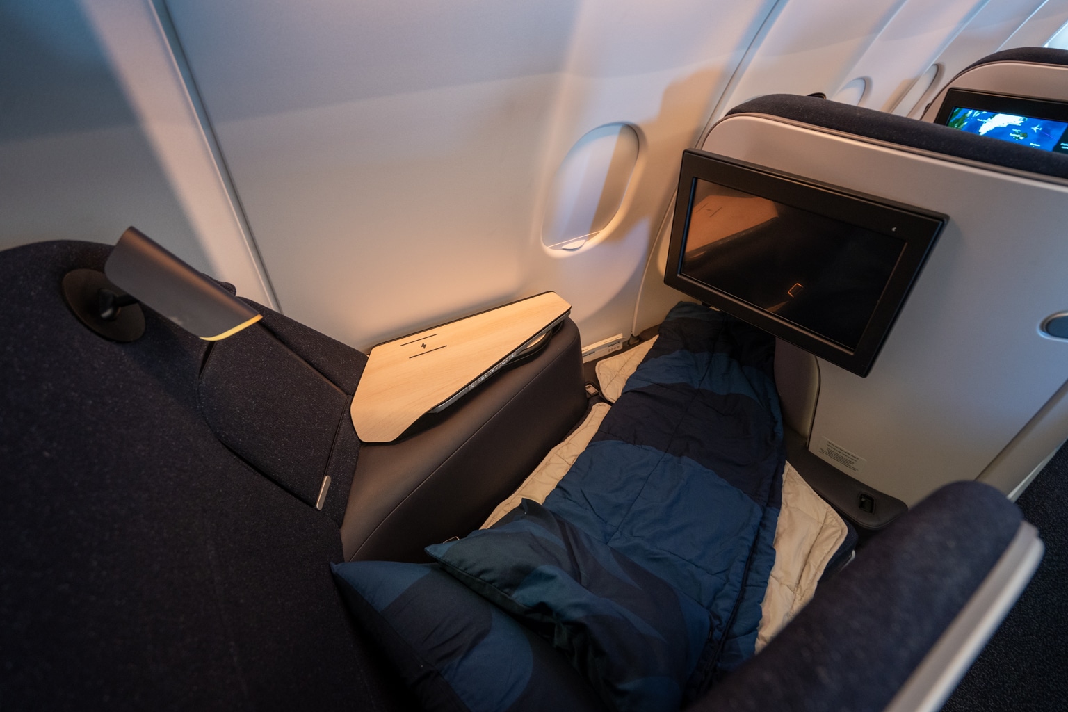 On the plus side, once the seat is in lie-flat mode, you’ve got a much broader space to move around in compared to other seat types, due to the seat’s minimal engineering and relatively thin hardware.