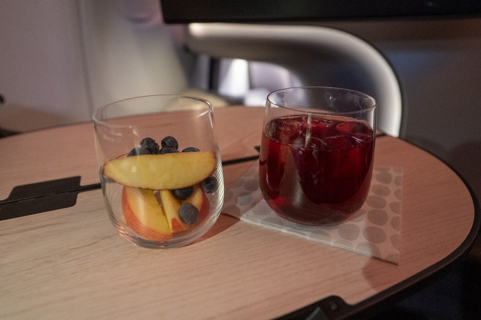 Once nestled into my bed, I took a quick nap, waking up with just three hours left in the journey. Upon waking up, a fruit bowl was proactively passed around, alongside some refreshing blueberry juice.