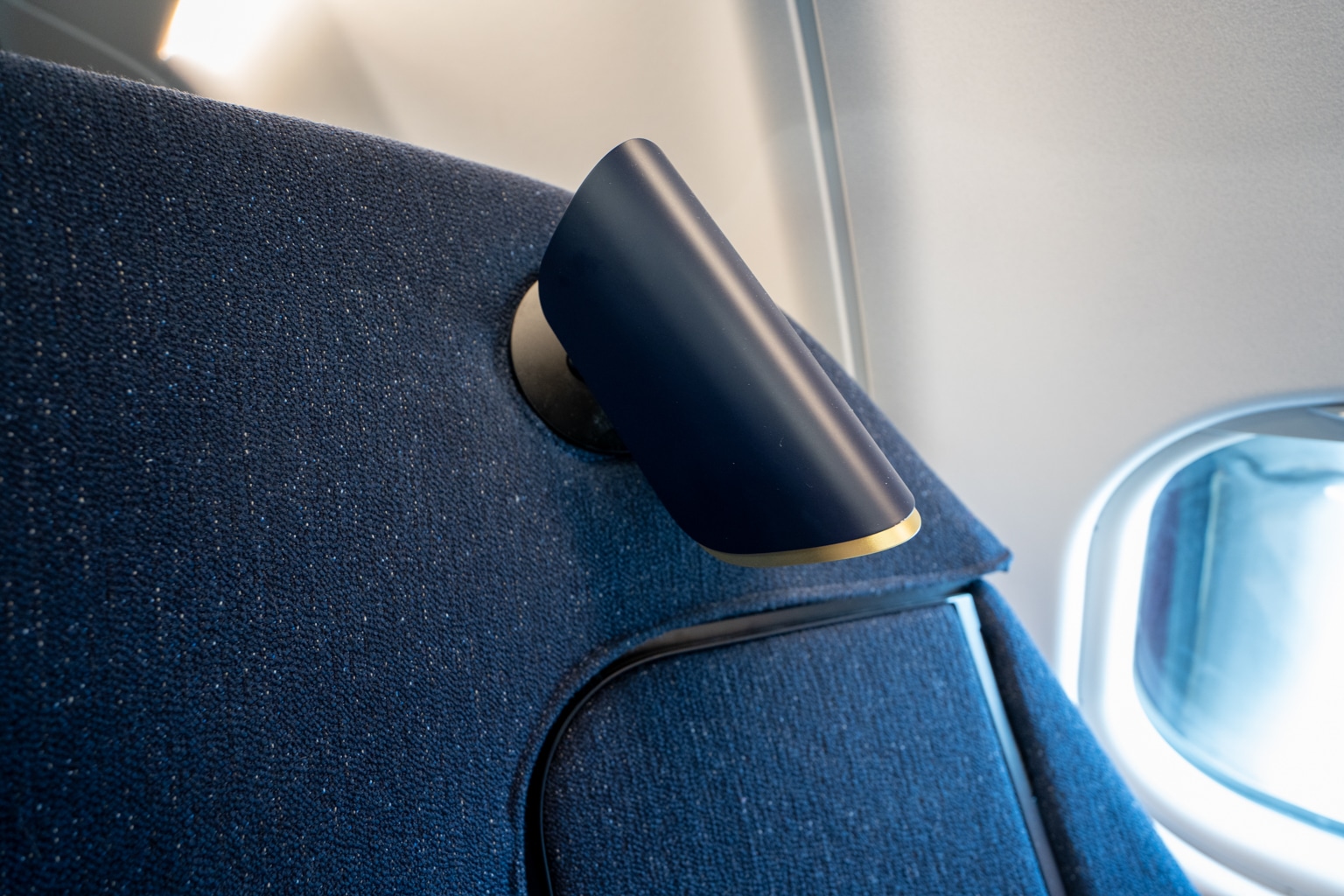 Near your shoulder, you can find a reading light and some additional storage space built directly into the seat, large enough for a cell phone.