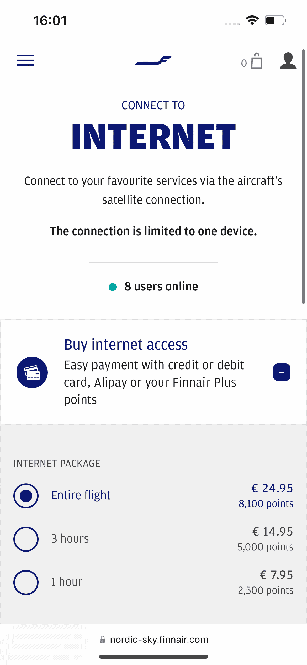 Wi-Fi is available onboard for purchase, either during the online check-in process or through your browser once onboard.