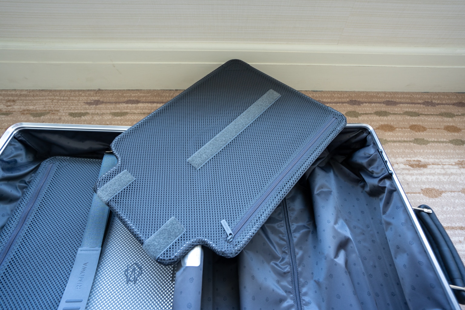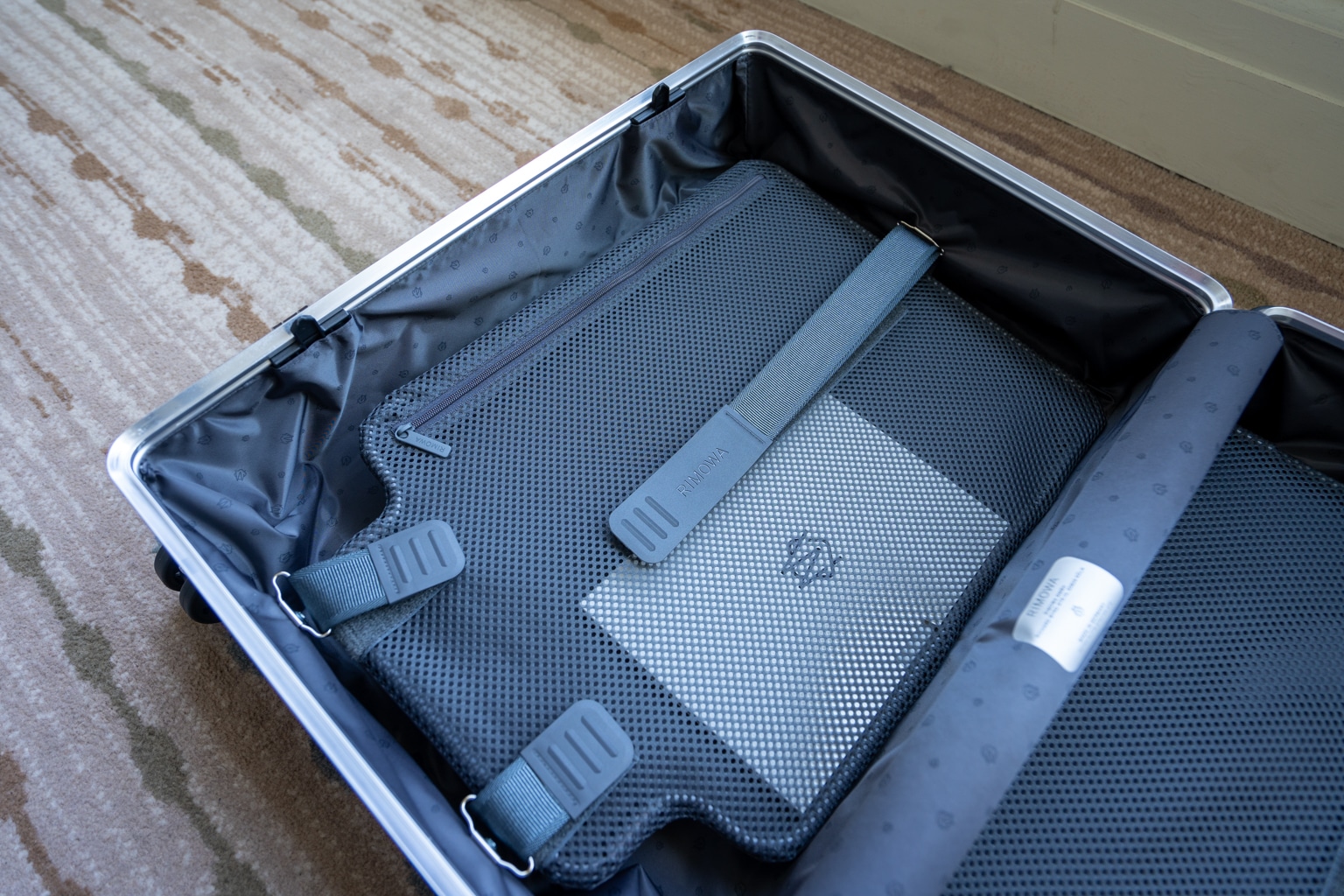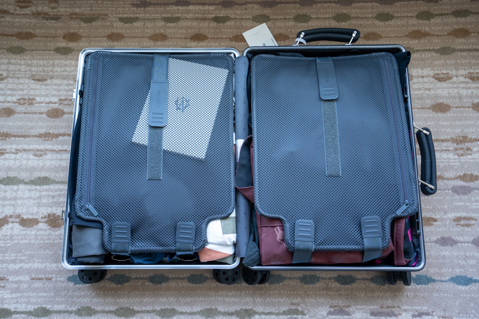 The Rimowa Classic Cabin has two evenly sized sections. Both have a packing layer called the Flex-Divider, which can be used to press down on your belongings and make sure they are jammed in as much as possible.