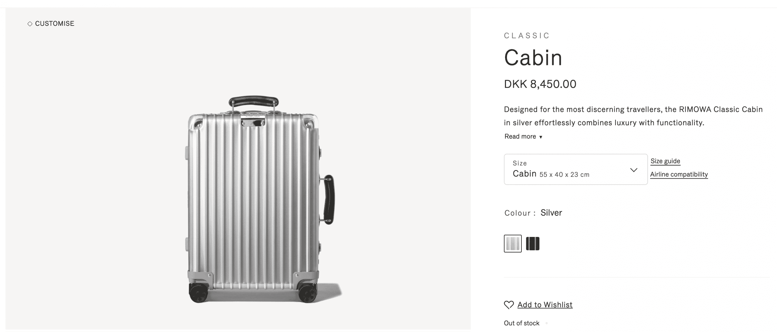 Rimowa’s Classic Cabin luggage comes in two colours: black and silver. In the end, I knew I wanted the Classic model over the Original, and I was visiting a Rimowa store in Copenhagen where I was going to make my purchase.
