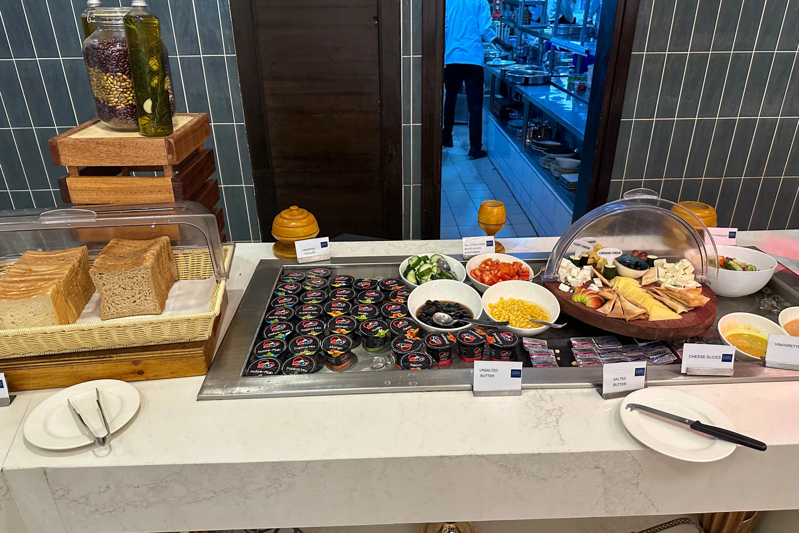Additionally, there was a charcuterie spread with a variety of cured meats and cheeses, complemented by salads, yogurt, and a selection of bread.
