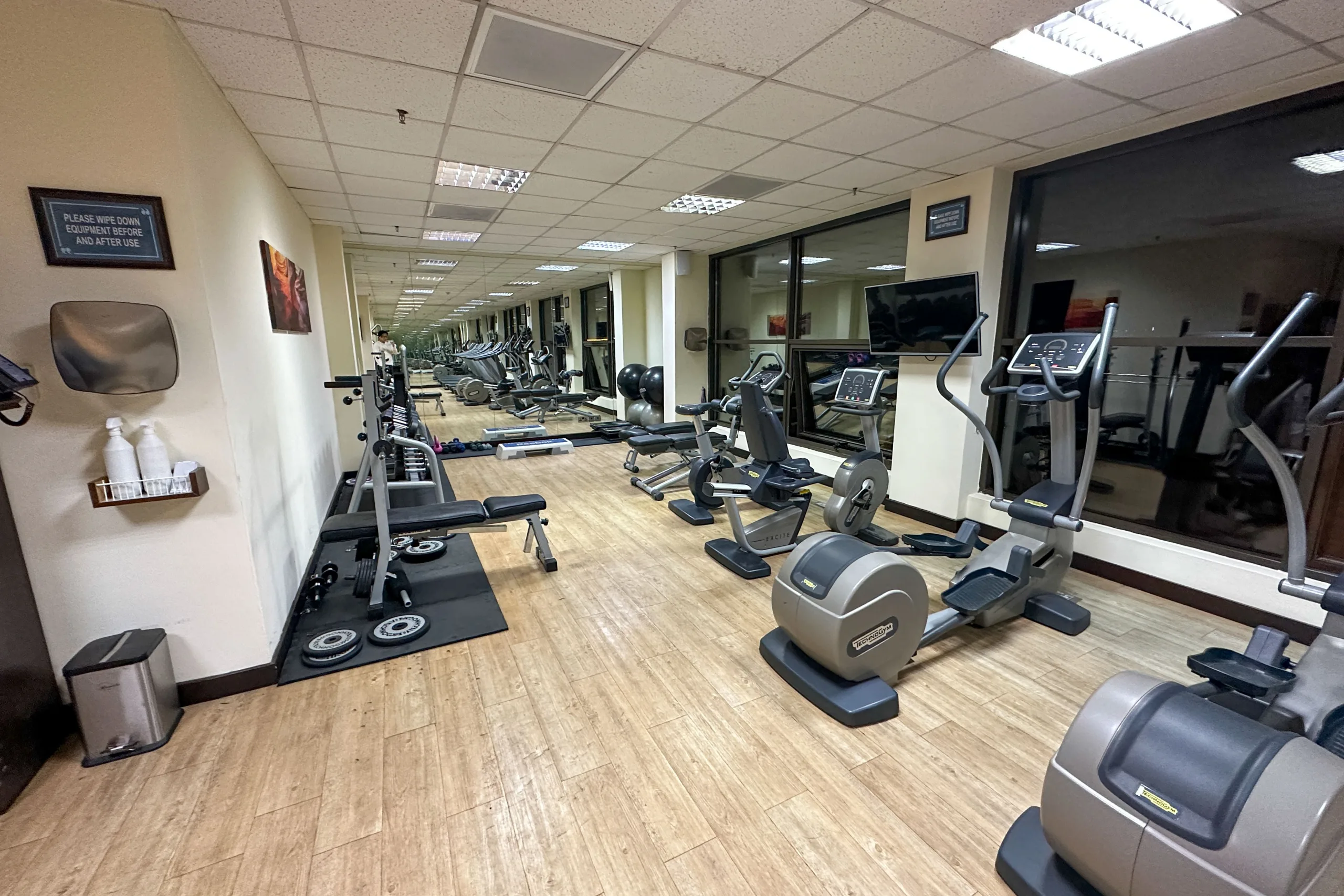 The fitness centre looked to be nice, and comes well-equipped with a variety of exercise equipment including treadmills, ellipticals, stationary bikes, and weight machines. The space is nicely lit, and a water cooler is available for guests.