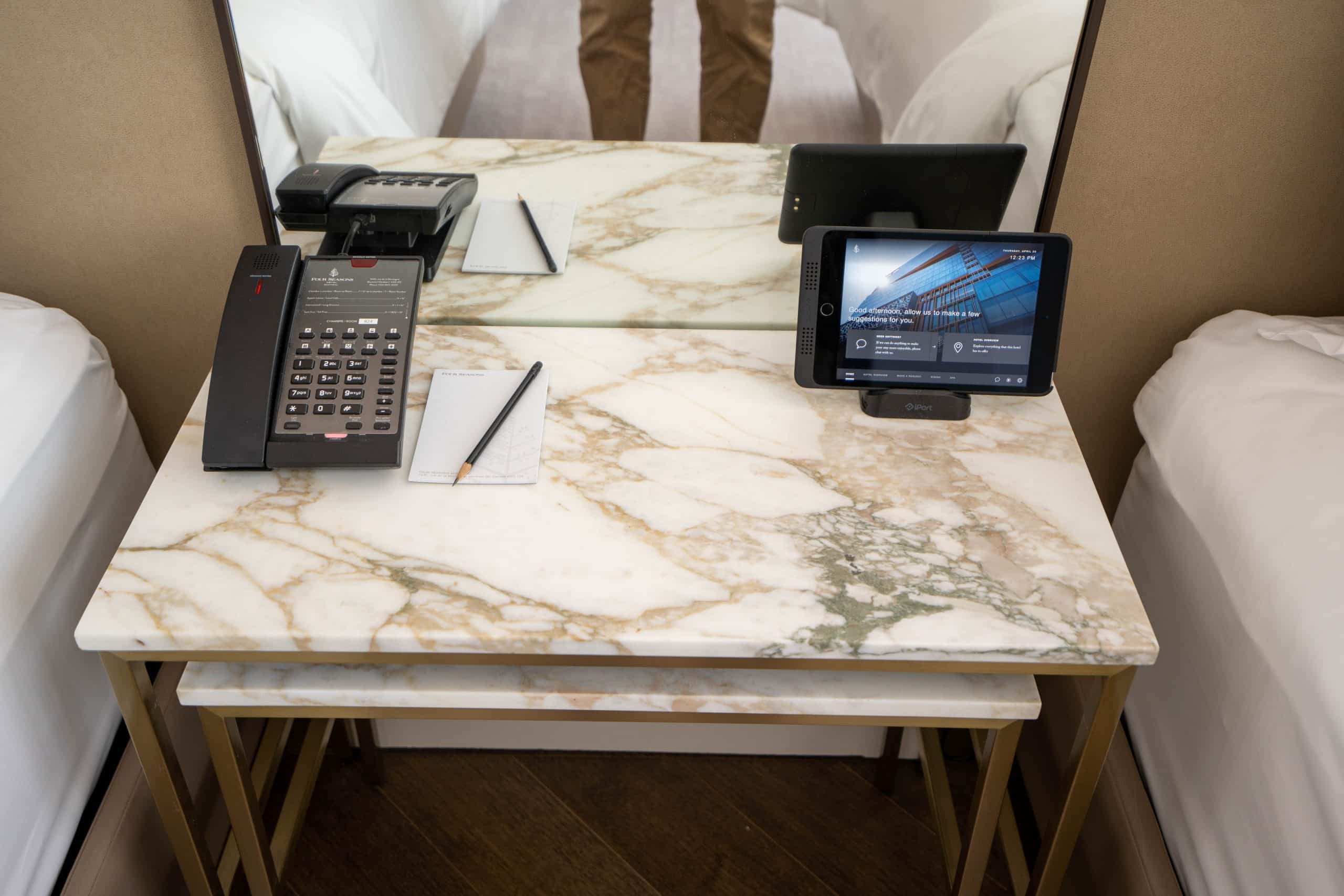 In addition, a full-body mirror stands in the centre of the room, with a Four Seasons iPad on the table for convenient access to hotel services, room service, housekeeping as well as in-room controls.