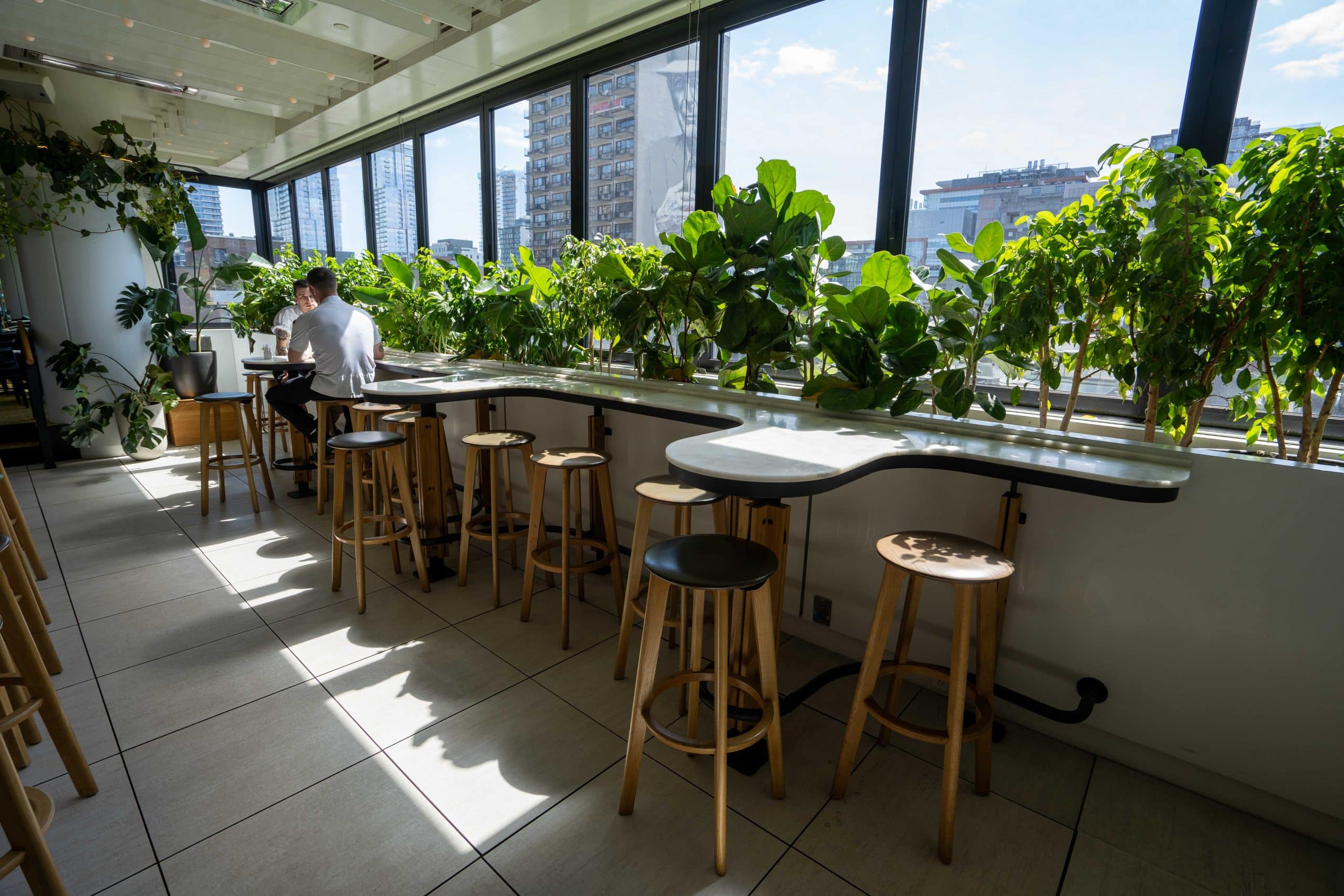 The terrace teeming with lush foliage and bespoke furniture, and you can take in breathtaking views of the city while admiring the Leonard Cohen mural.