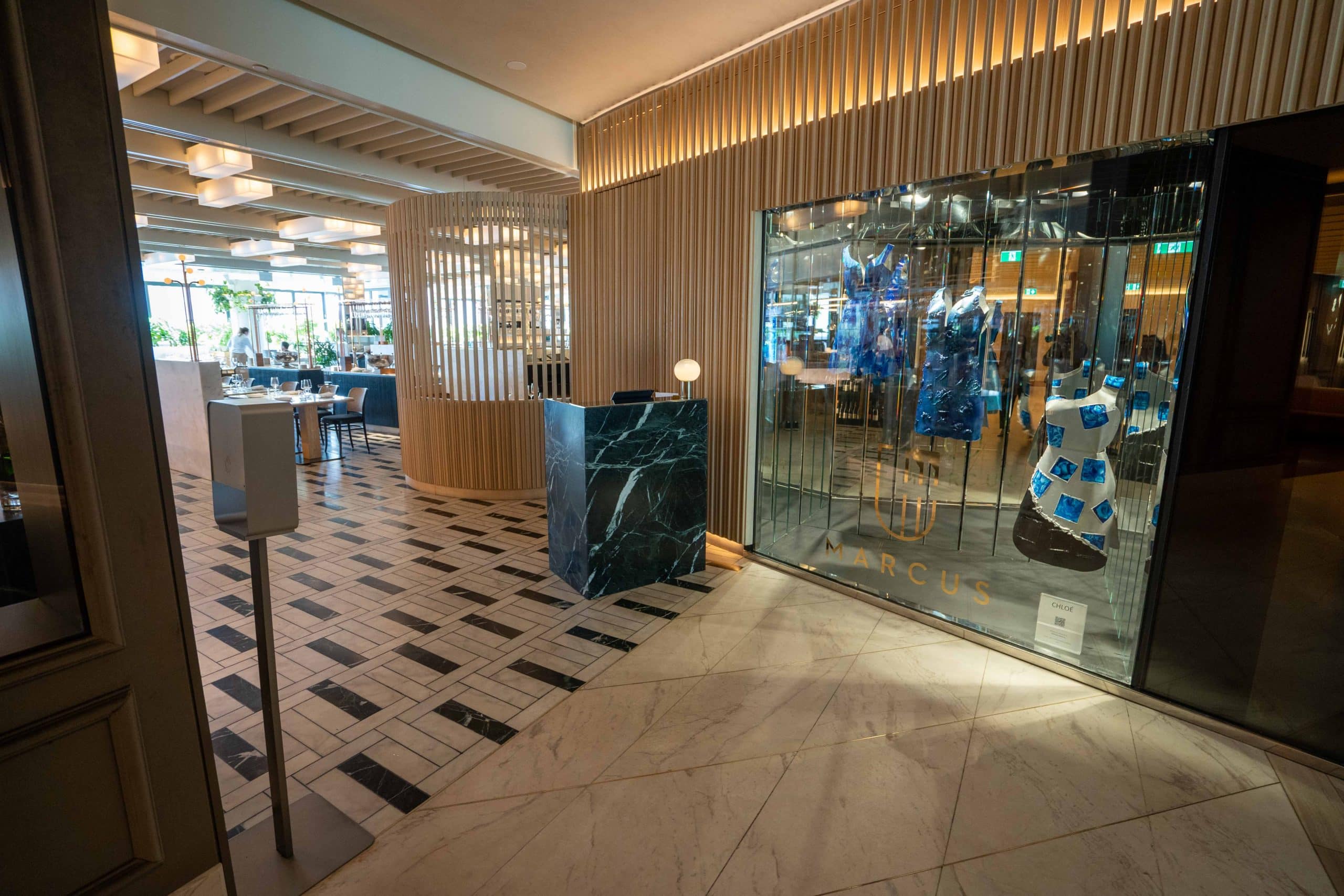 Marcus is a sprawling restaurant with a terrace, bar, and lounge area. These four spaces are collectively referred to as the “Social Square.”