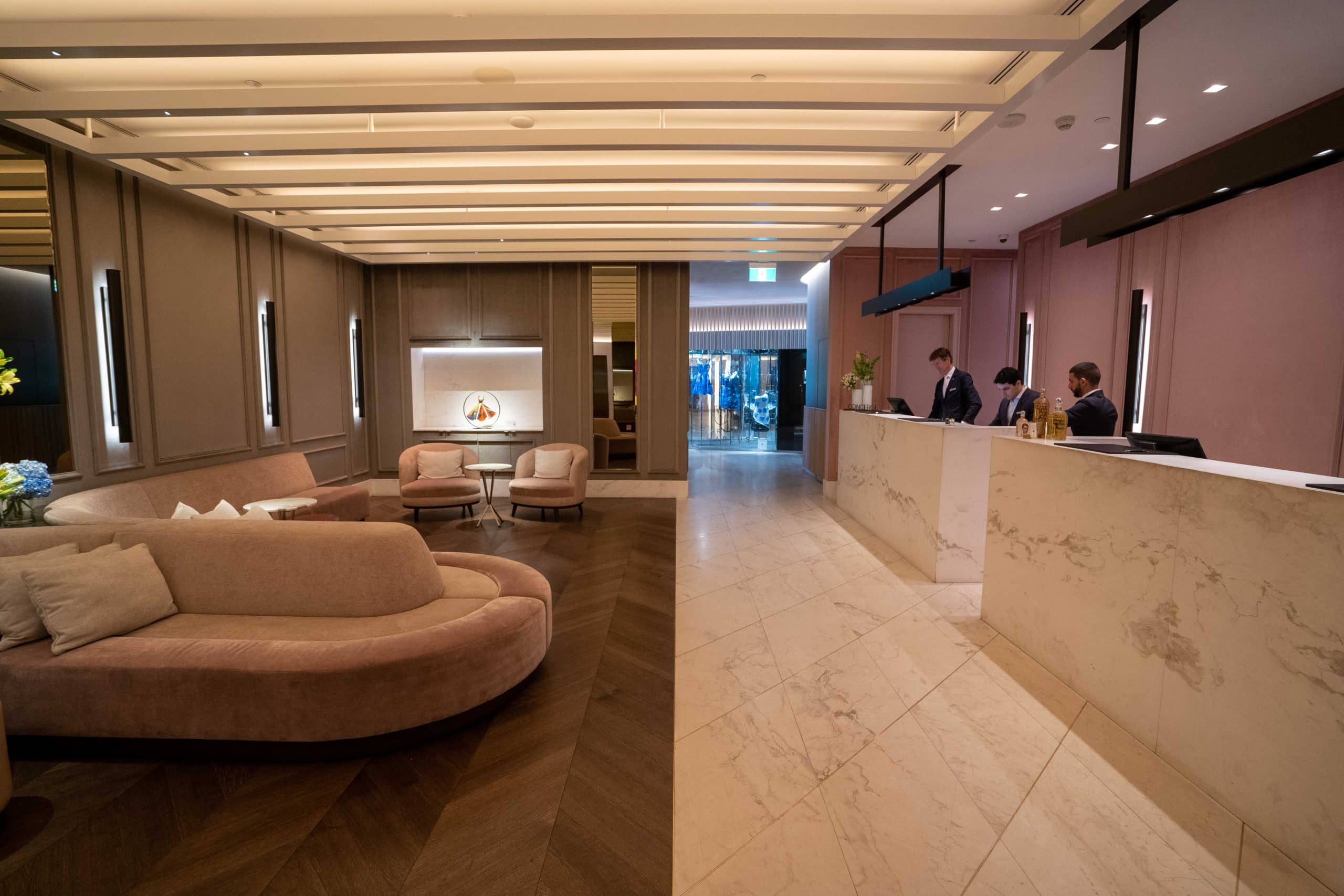 I was then whisked away to the third-floor lobby, where check-in was completed. Here, white marble floors and walls adorned in pink velvet add a layer of luxurious texture.