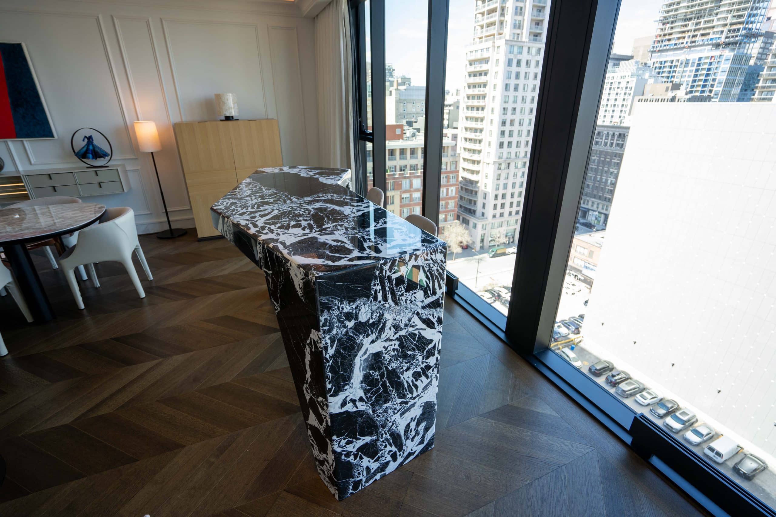 The Presidential Suite, situated on the highest floor and covering an impressive 2,121 square feet, is the epitome of modern luxury in Montreal.