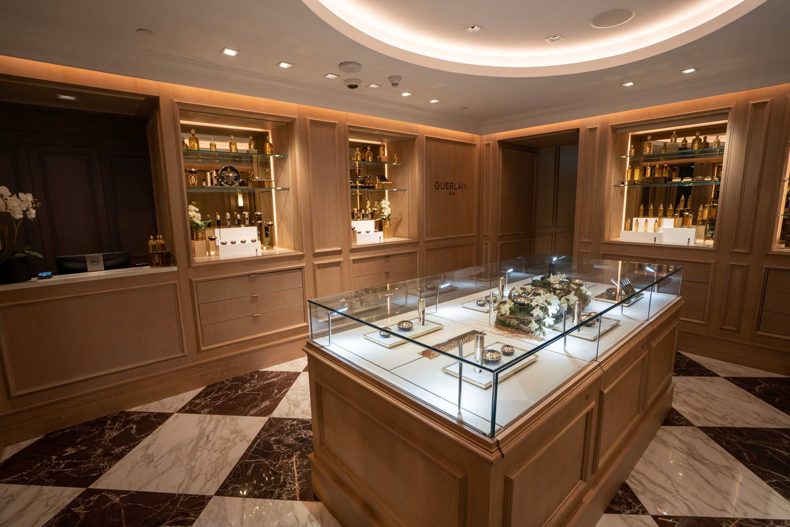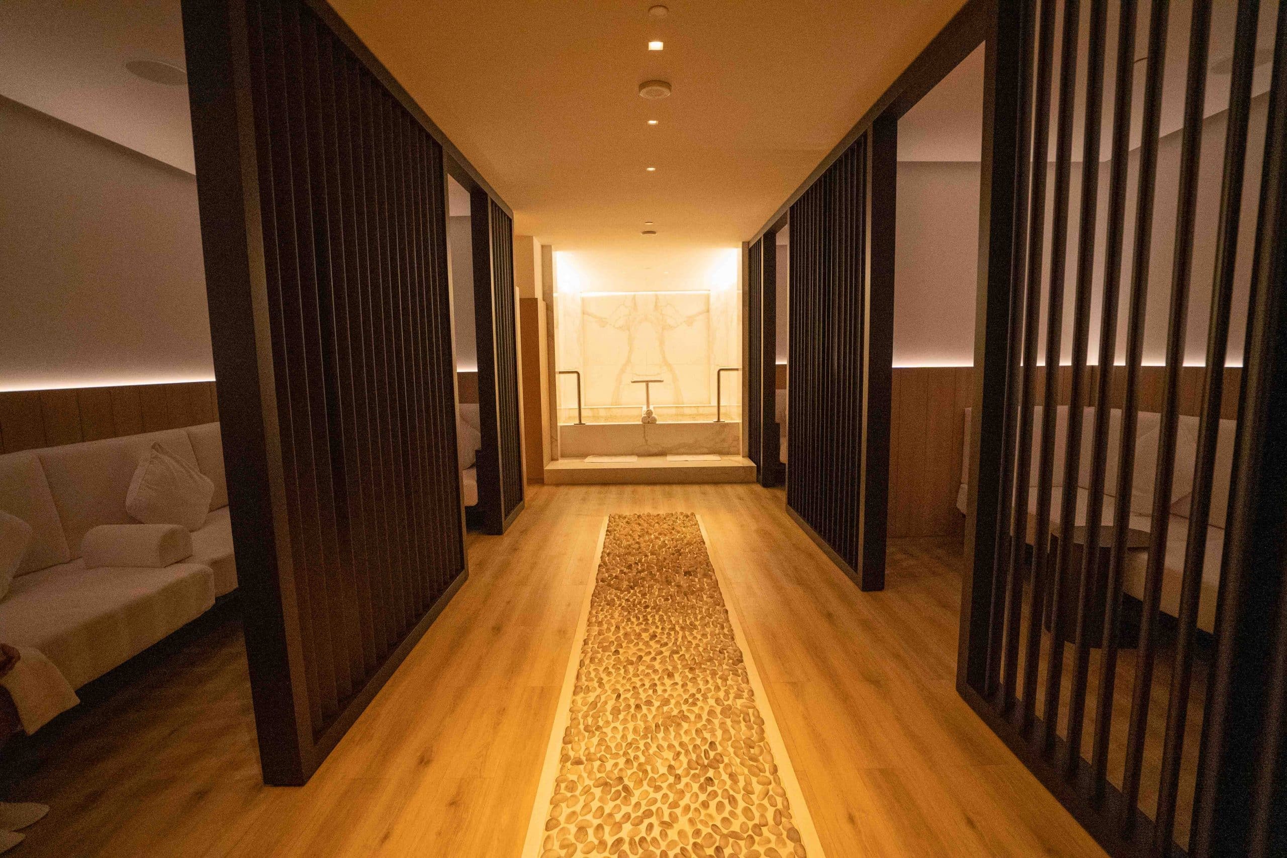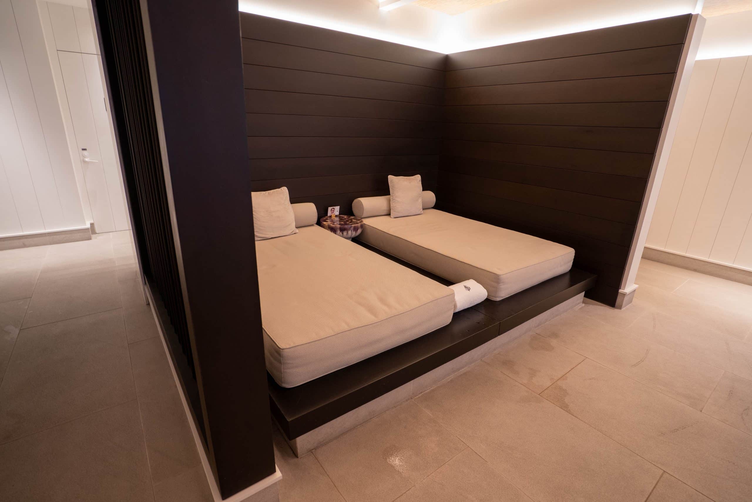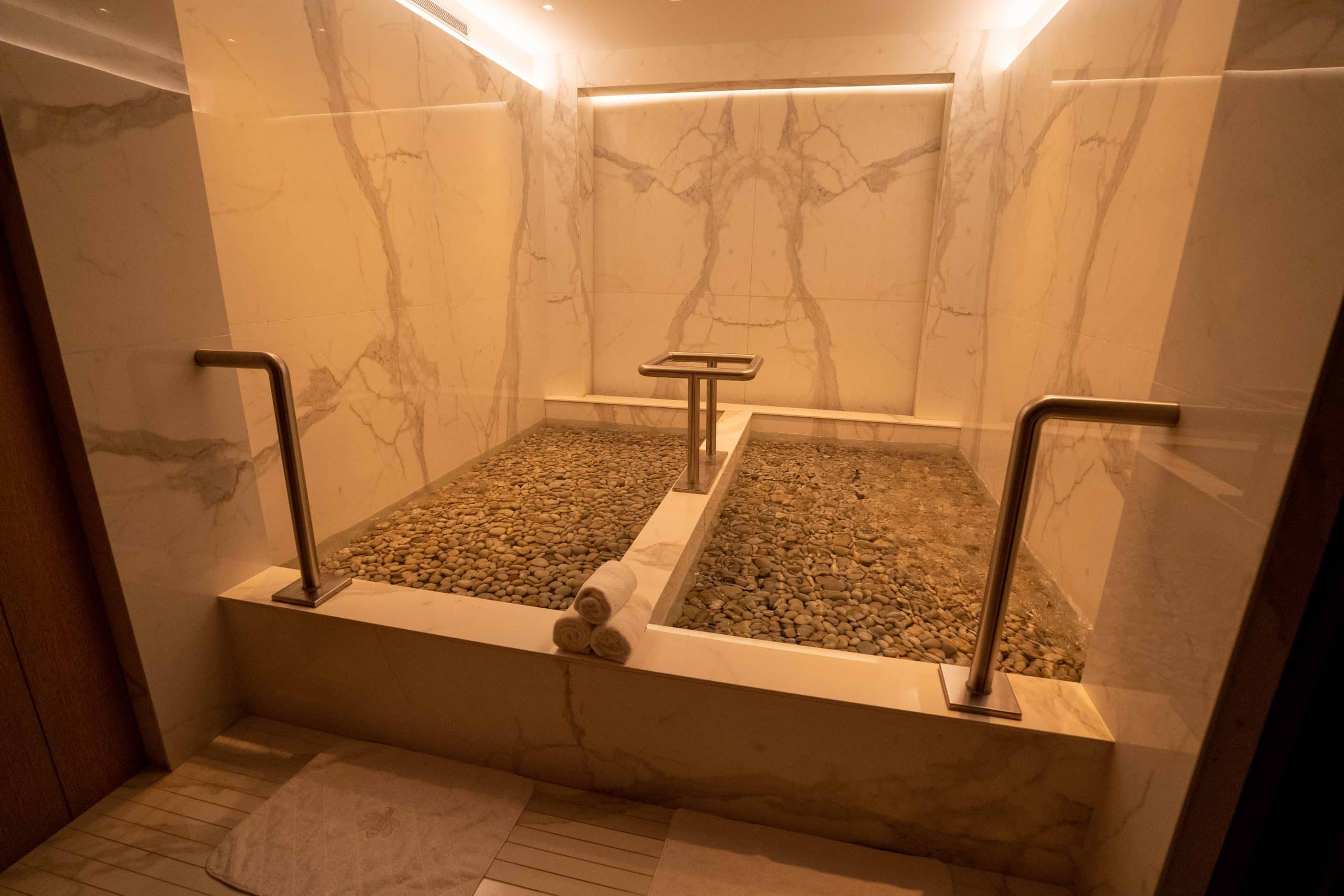 The Guerlain Spa had a unique relaxation room that caught my attention, including a path of jagged stones thoughtfully designed to stimulate circulation. Further inside, tranquil pools of water with more of these textured stones awaited.