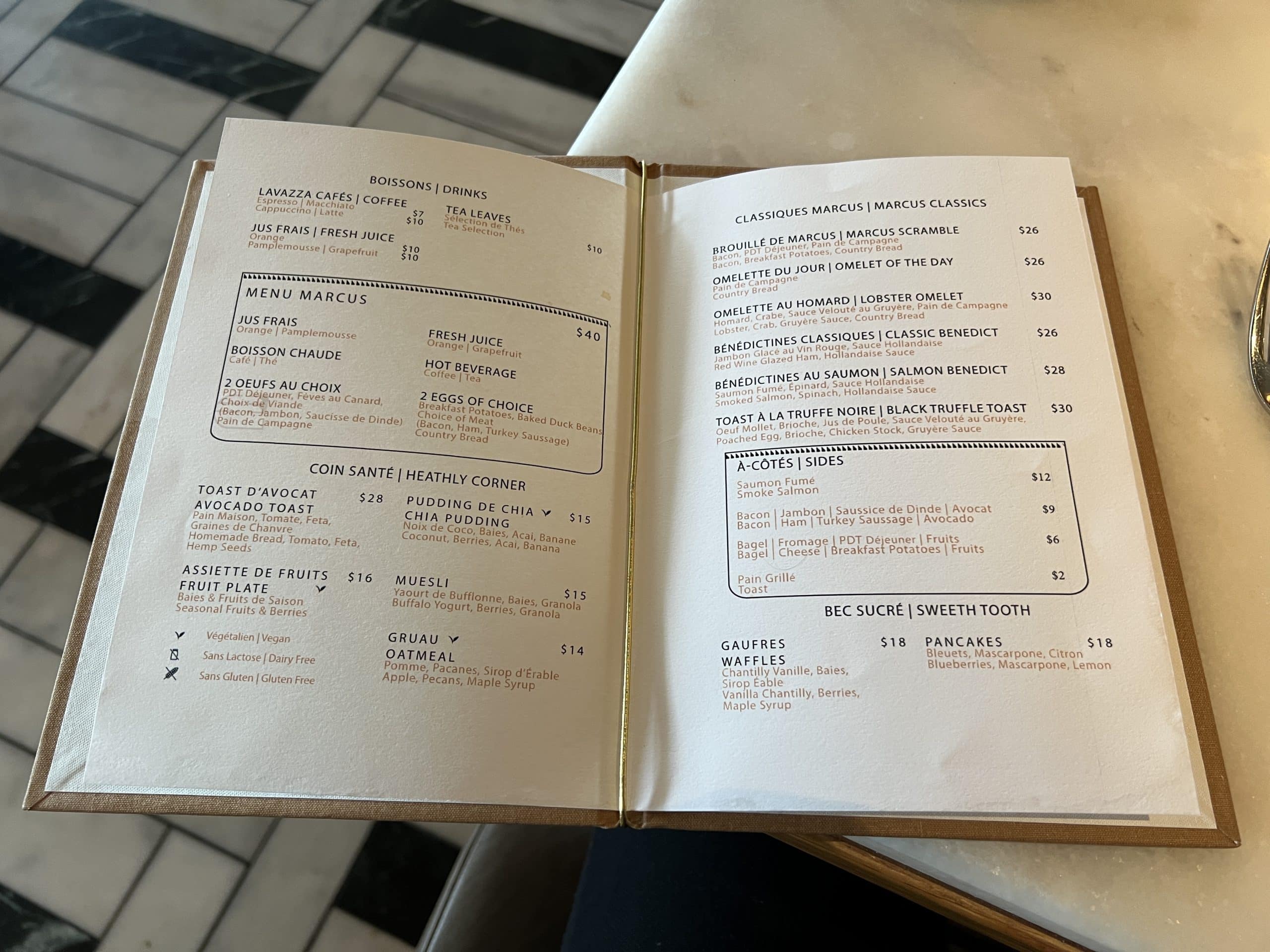 Nestled on the third floor of the Four Seasons Montreal is its signature restaurant Marcus, which is led by celebrity chef Marcus Samuelson. I had the pleasure of having breakfast here, and in the evening, I hosted a friend for dinner.
