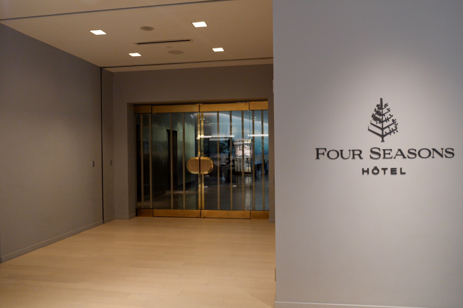 As you approach the street-level entrance, you’ll catch sight of the iconic Four Seasons logo emblazoned above a set of revolving doors, which welcomes you into a simple yet elegant foyer.