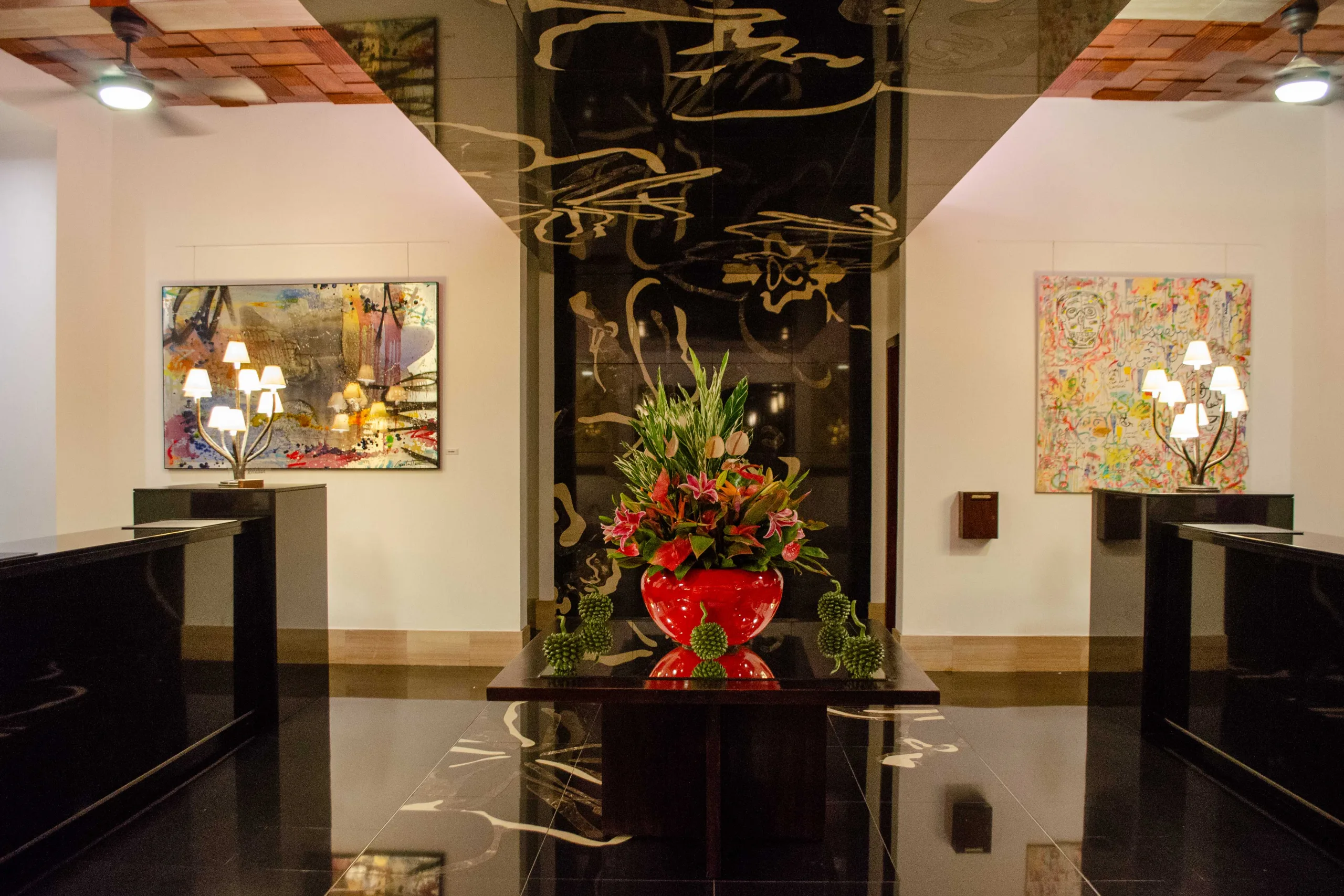 At the heart of the resort lies the main pavilion, which encompasses a stylish lobby, a bar, dining options, a range of shops, and an art gallery.