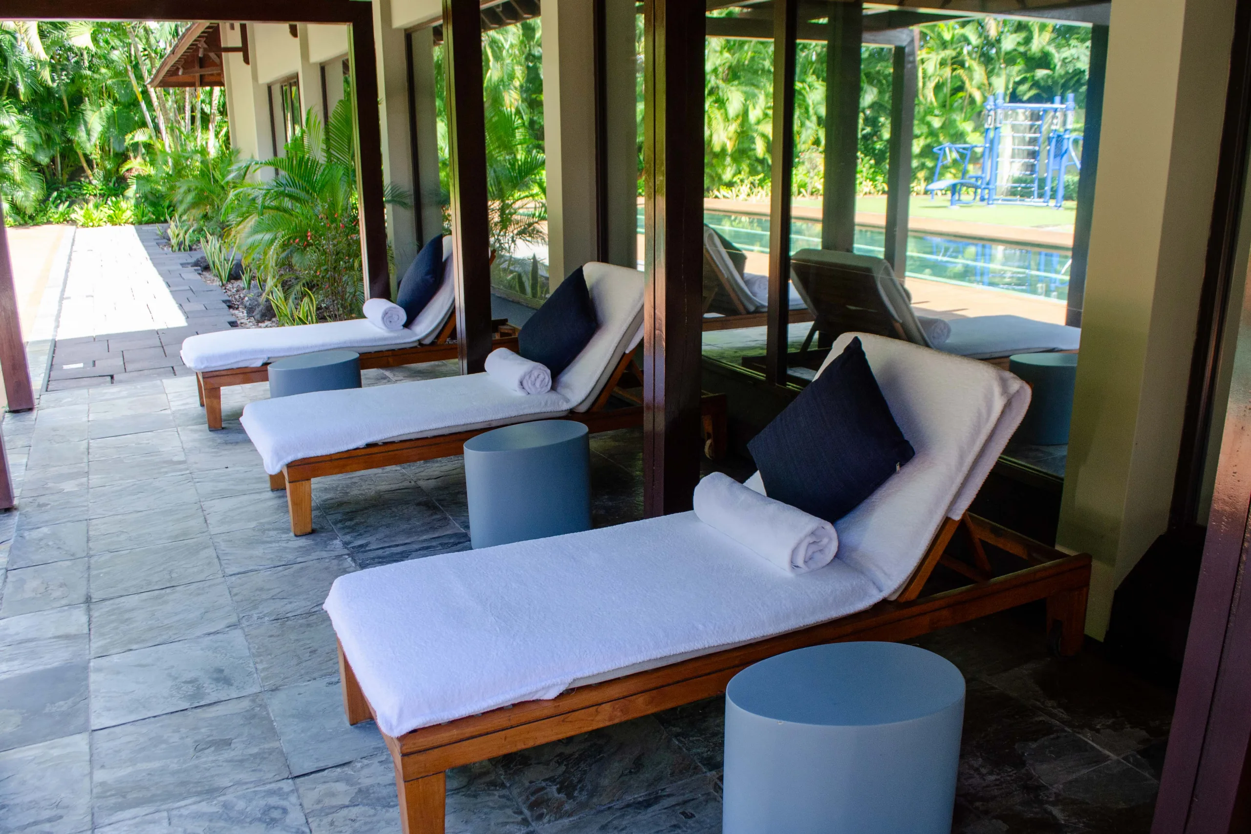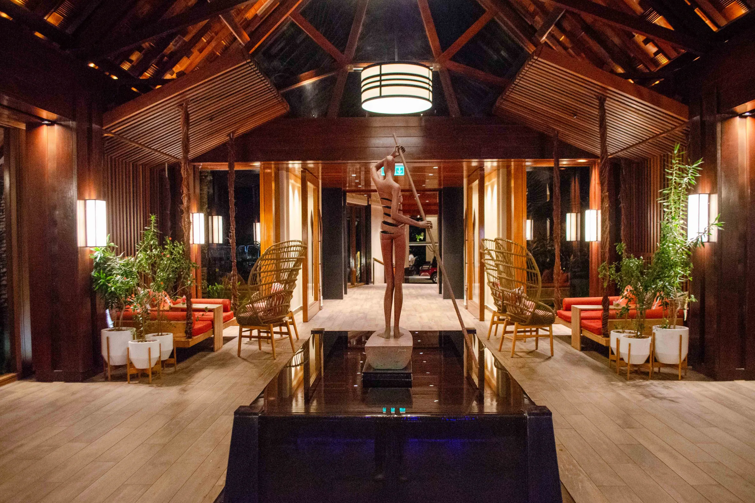 The lobby’s open-air design drew me in, and is a prime example of this design philosophy. There are stunning views of both the lagoon and the resort’s grounds, masterfully blending the indoor luxury with the lush greenery of the exterior,